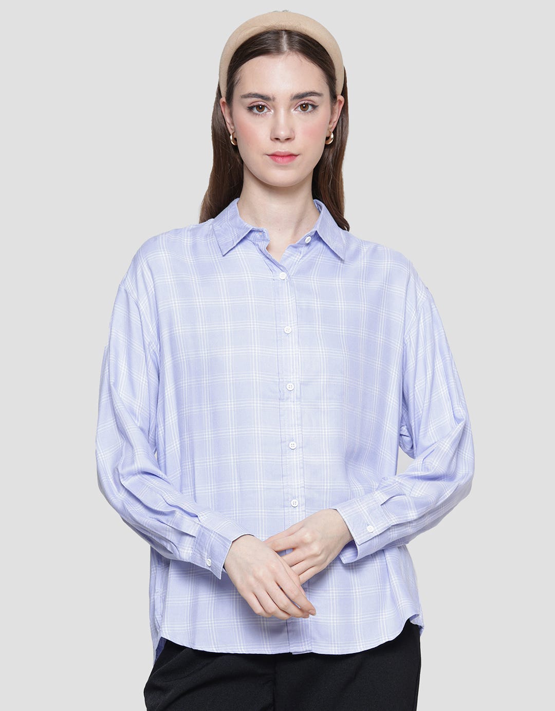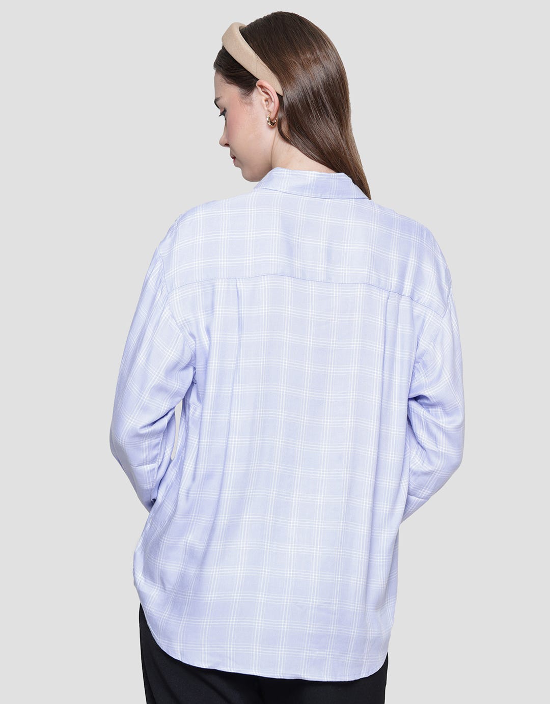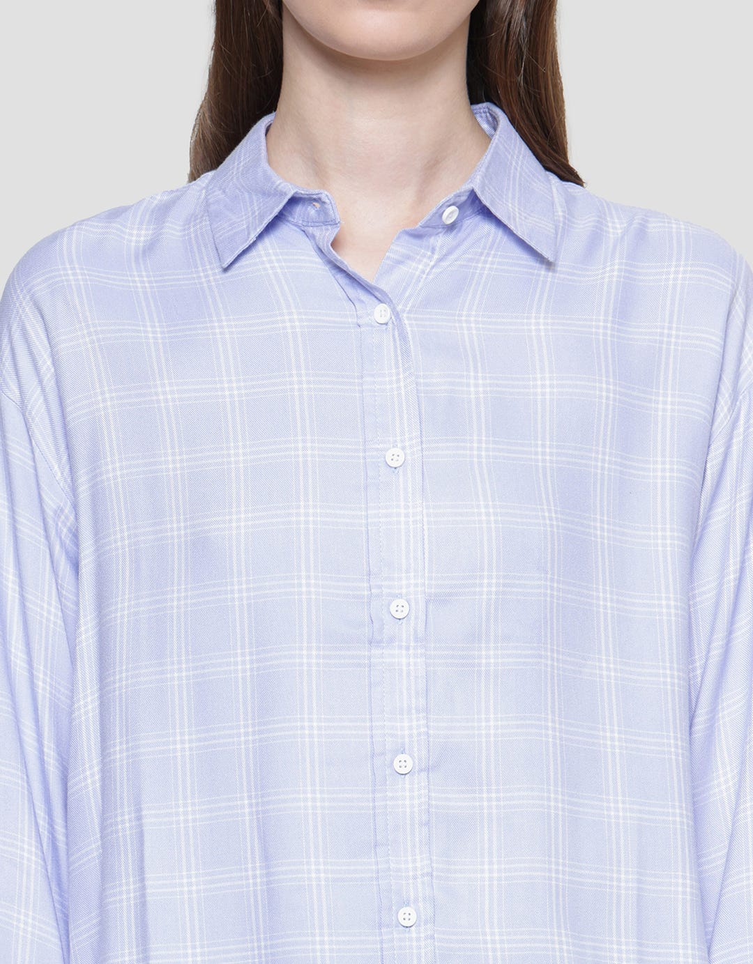 Nevada Check Rayon Twill Kemeja Lengan Panjang Wanita
