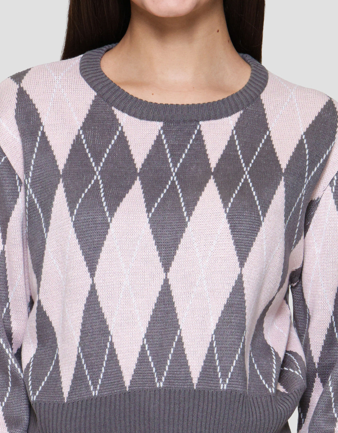 Nevada Crop Flat Knit Argyle Sweater Wanita