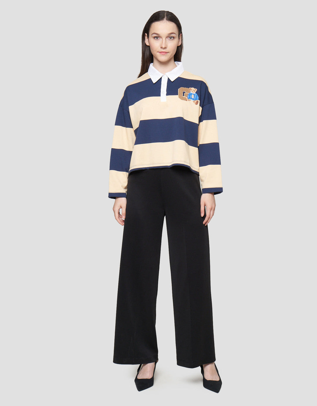 Nevada Crop French Stripe Sweater Wanita