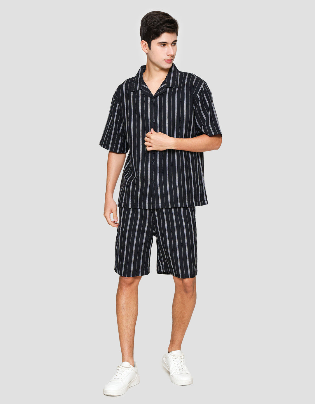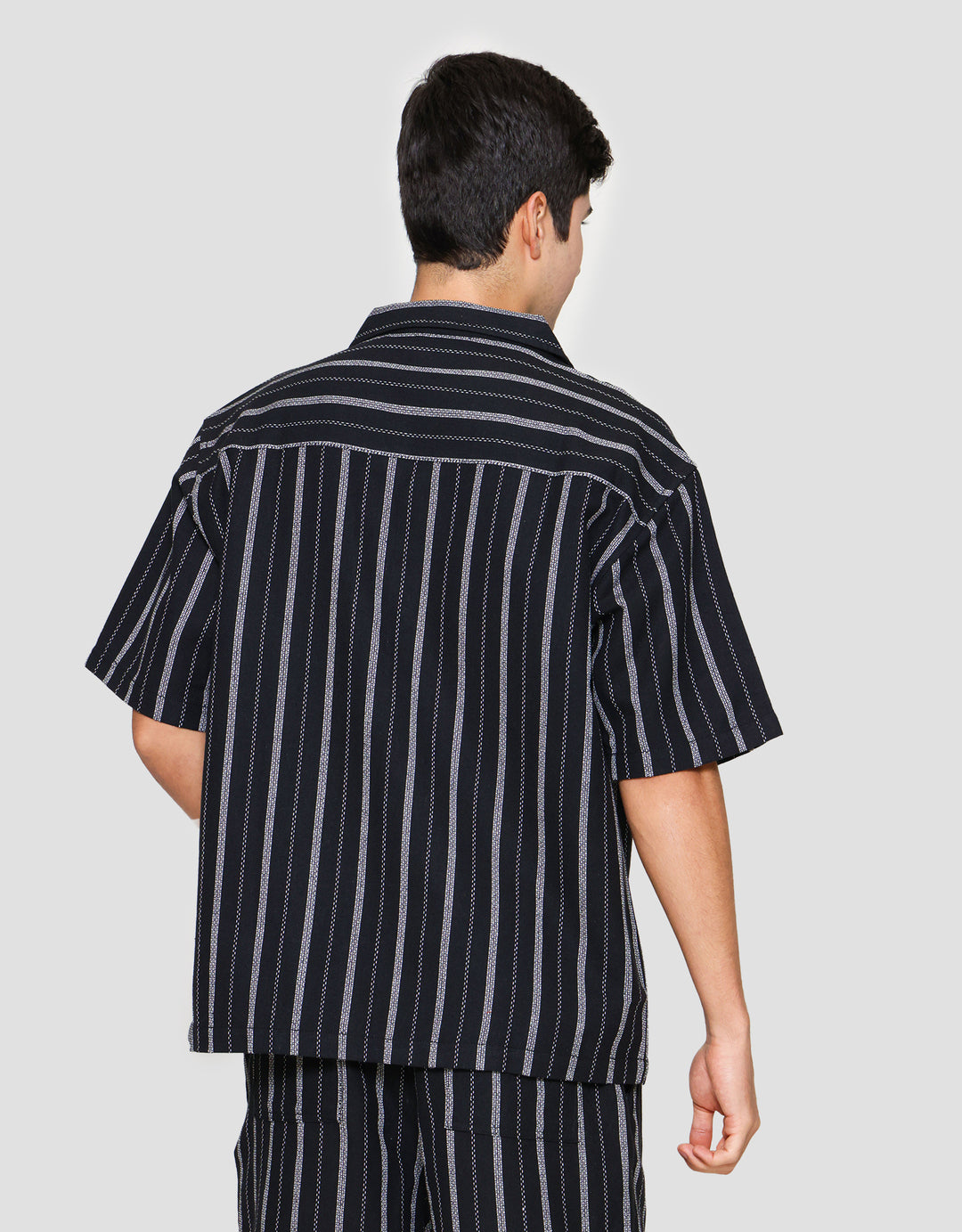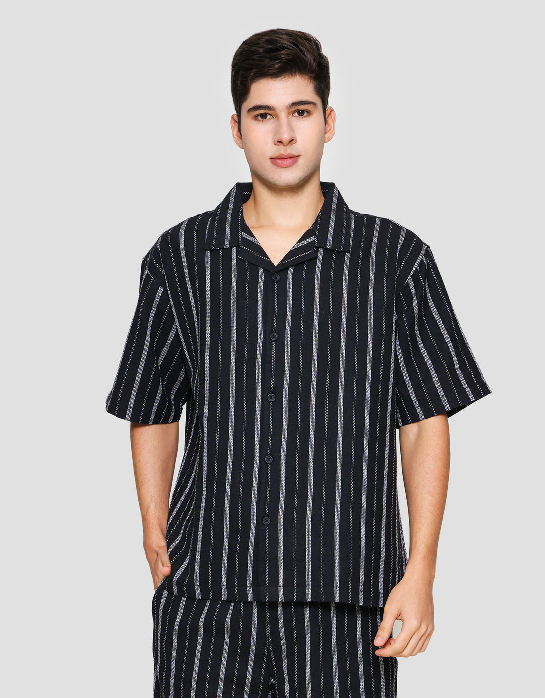 Nevada Cuban Print Stripe Vertical Kemeja Lengan Pendek Pria