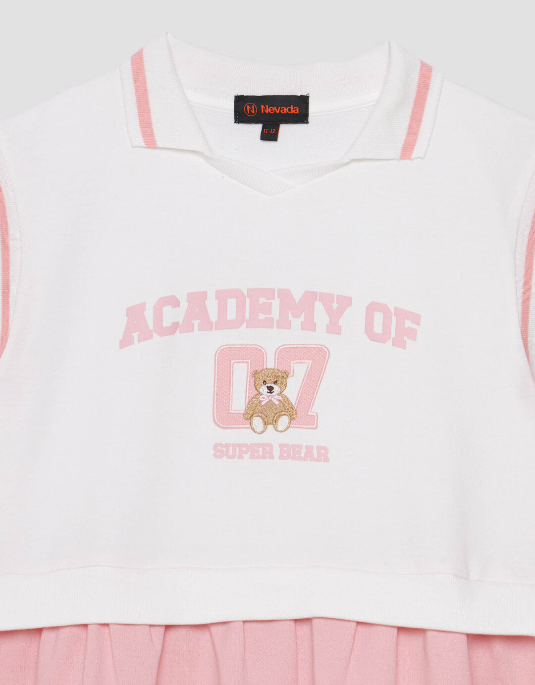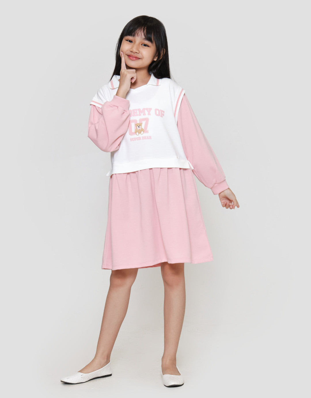 Nevada Fake 2 Pcs Academy Bear Midi Dress Anak Perempuan