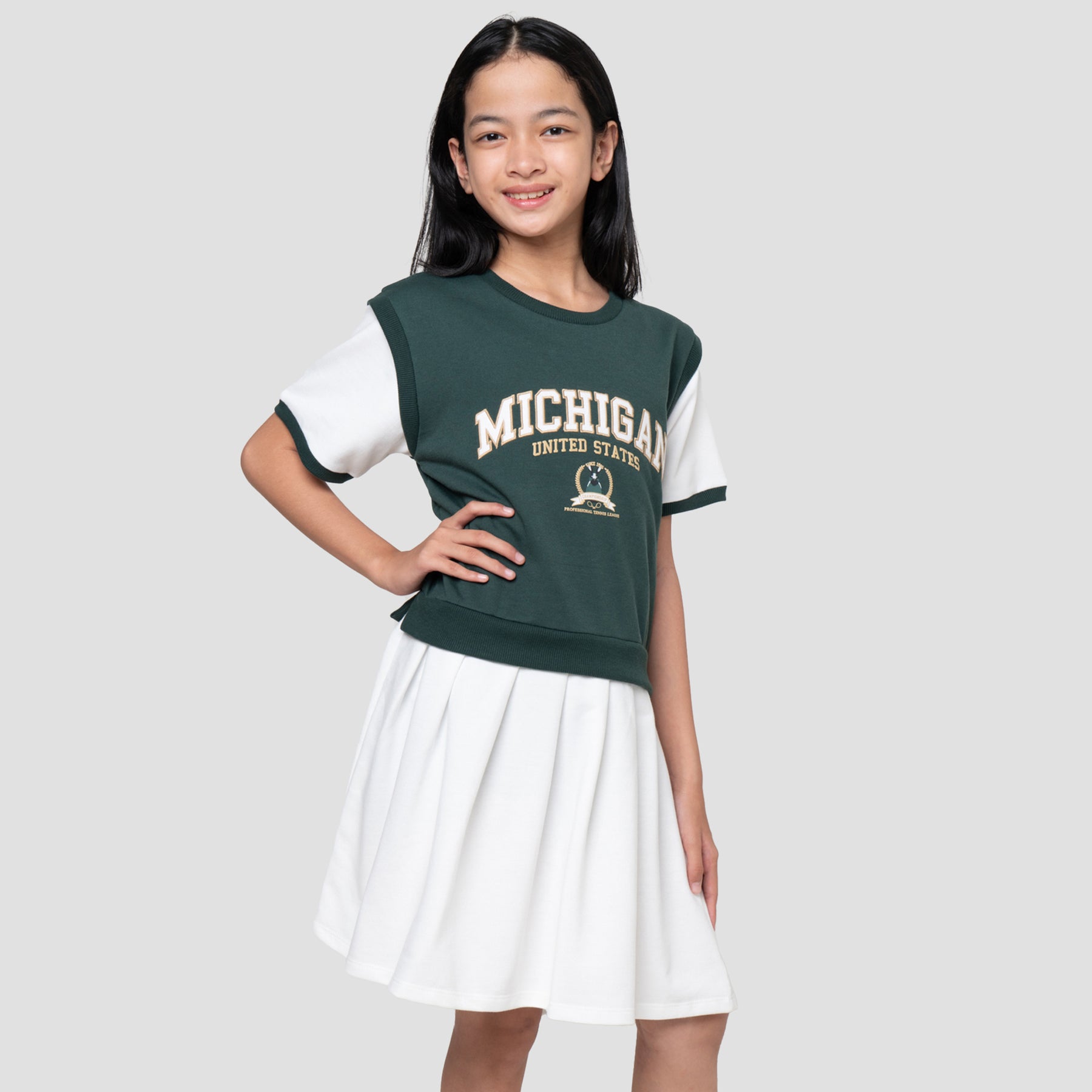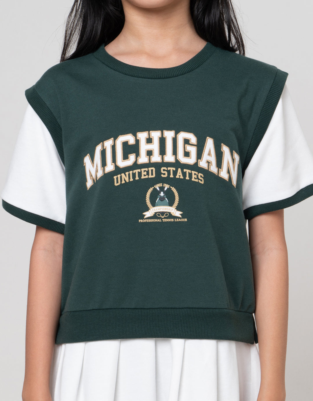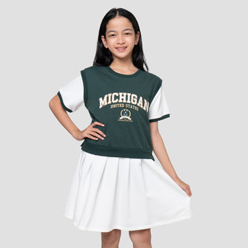 Nevada Fake 2 Pcs Mihigan Dress Anak Perempuan
