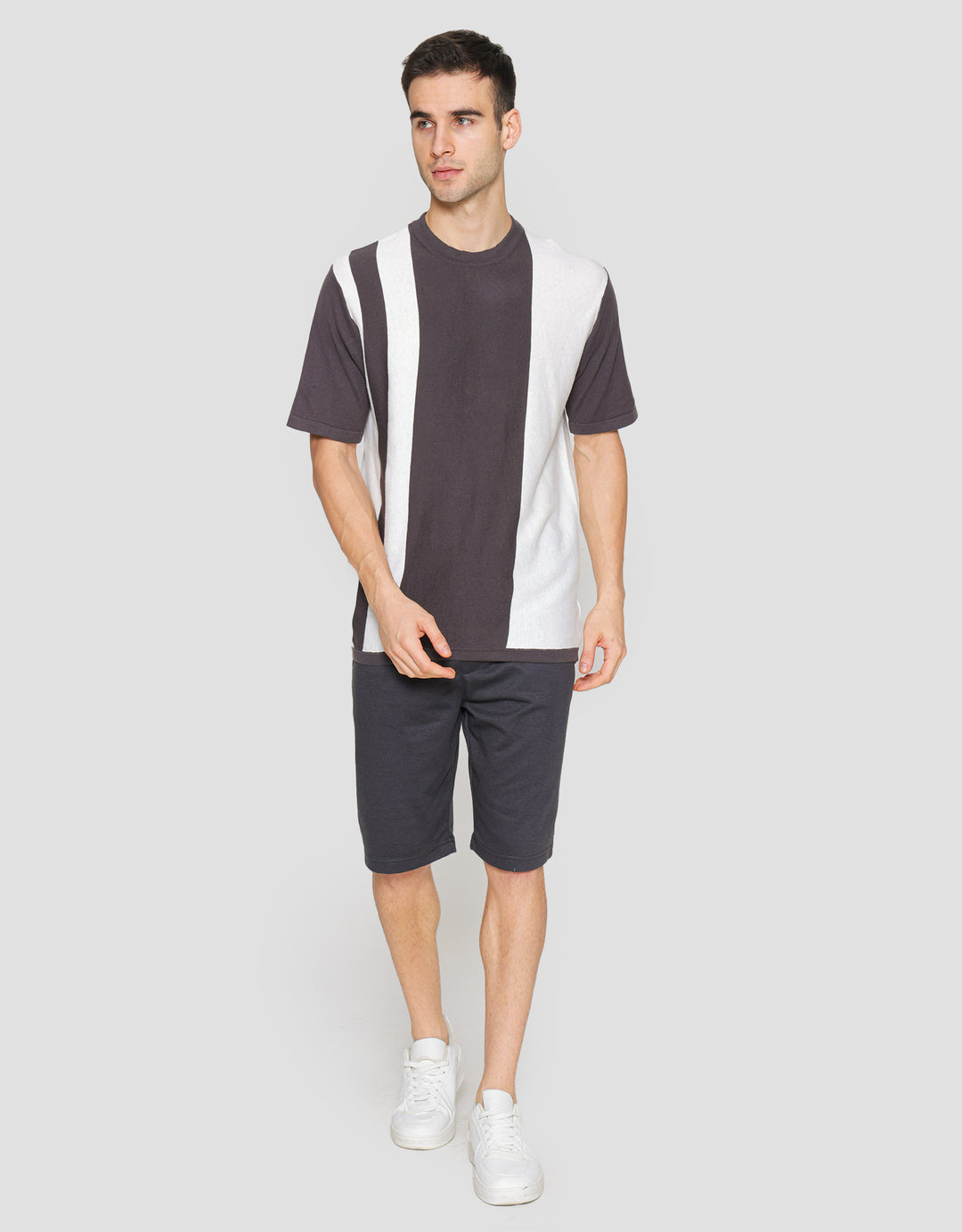 Nevada Flat Knit Stripe Block Vertical Kaos Lengan Pendek Pria