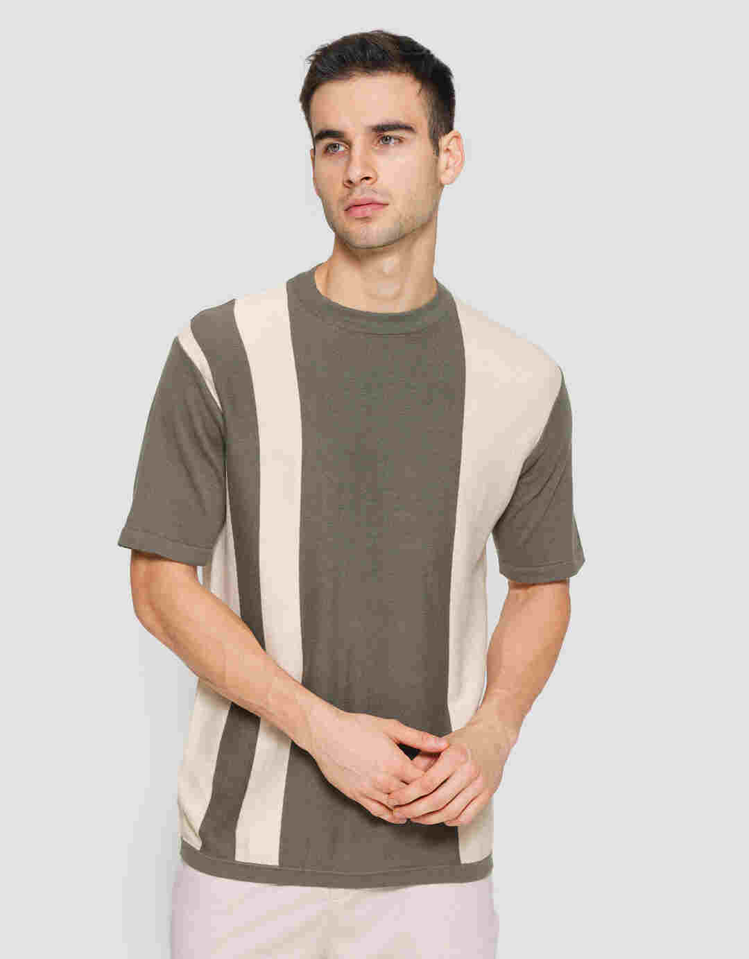 Nevada Flat Knit Stripe Block Vertical Kaos Lengan Pendek Pria
