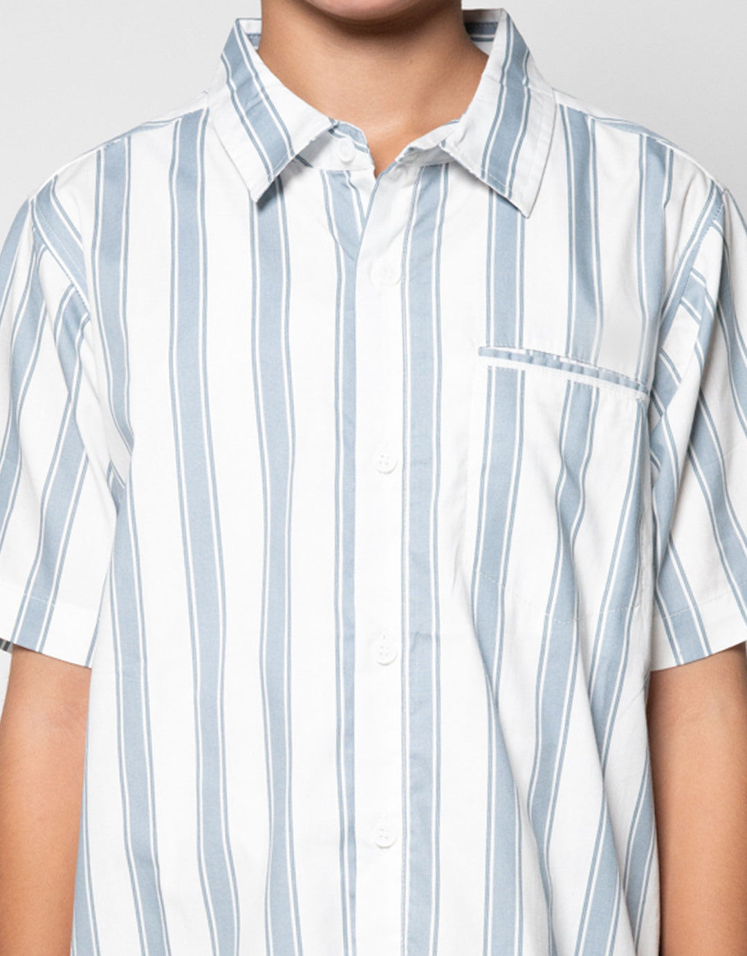 Nevada Full Print Stripes Round Neck Kemeja Anak Laki-laki
