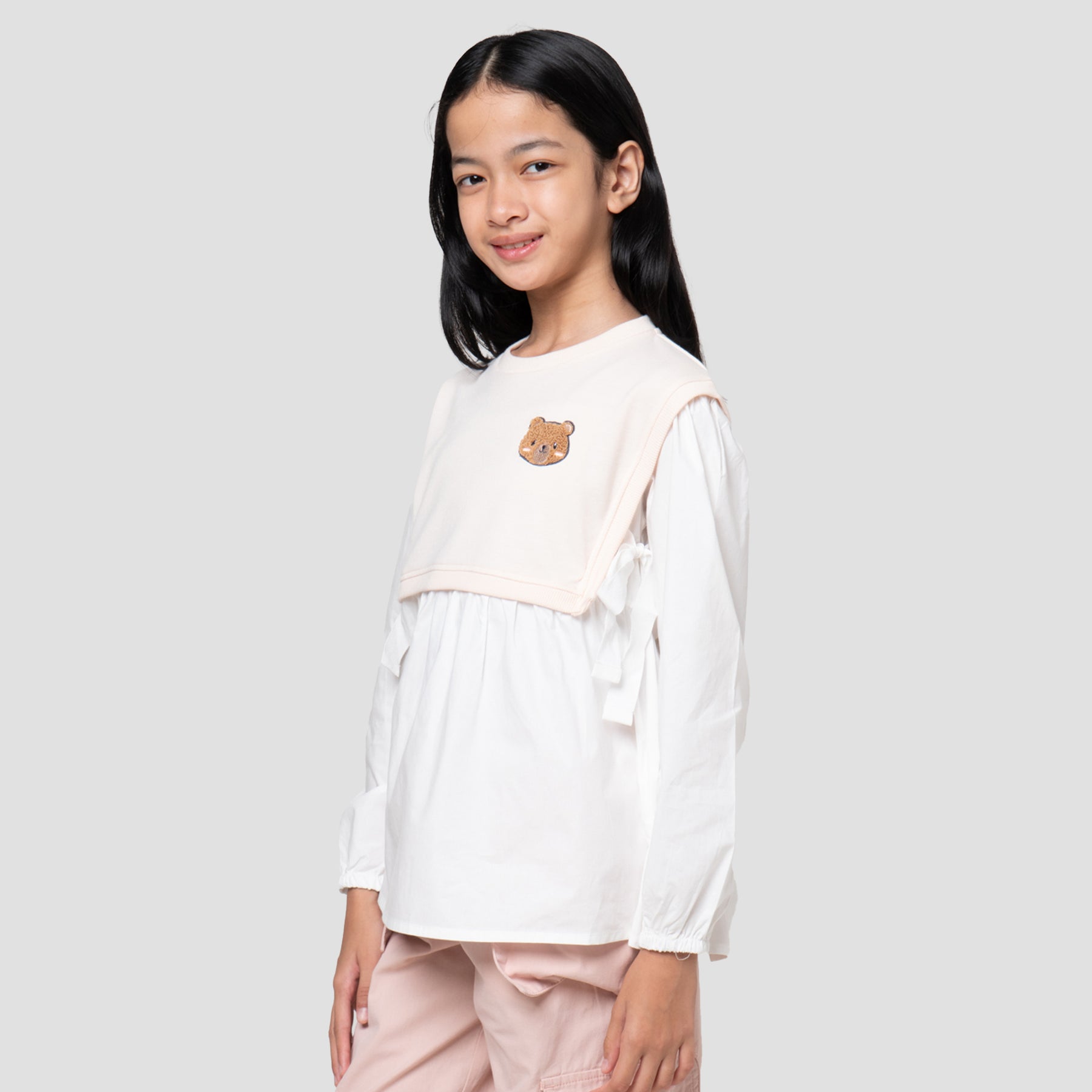 Nevada Knit Bordir Chenile Flower Kemeja Anak Perempuan