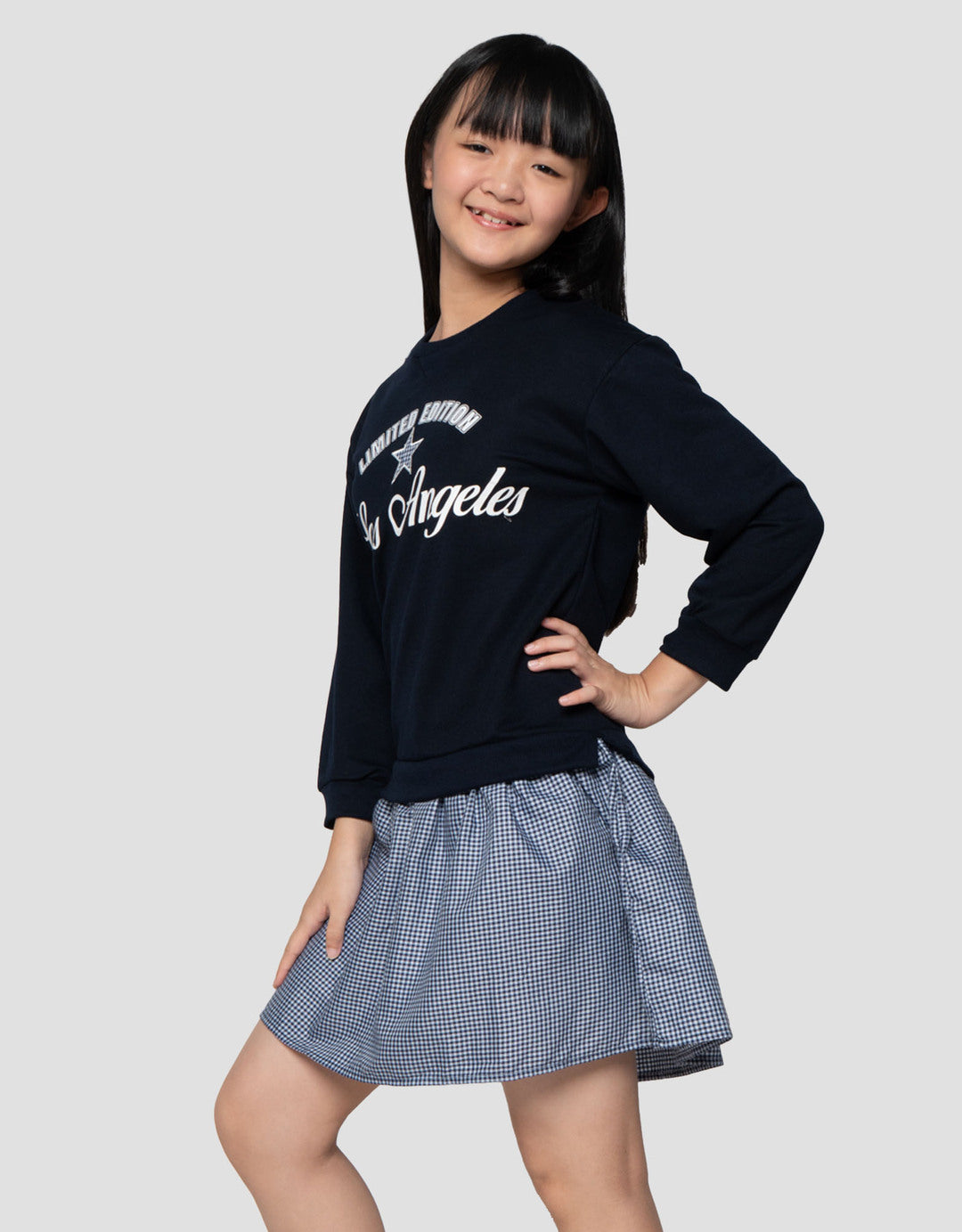 Nevada Kombi Woven Kotak Midi Dress Anak Perempuan
