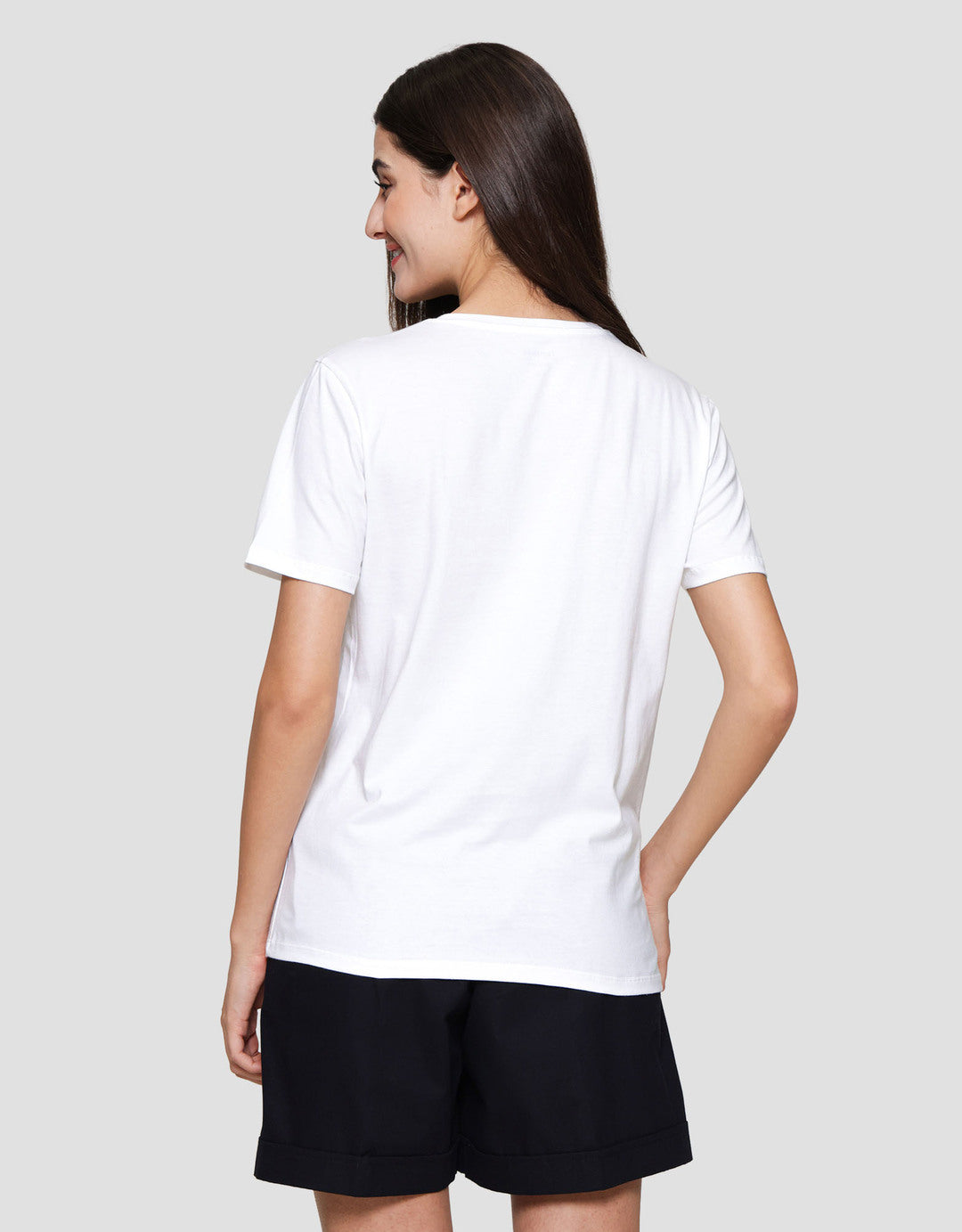 Kaos wanita dengan model yang casual dan simple serta detail print yang berkualitas, cocok untuk Anda gunakan pada moment keseharian menemani saat santai Anda. Kaos ini juga dapat dipadankan dengan bawahan apapun yang membuat Anda lebih nyaman dalam beraktifitas.
