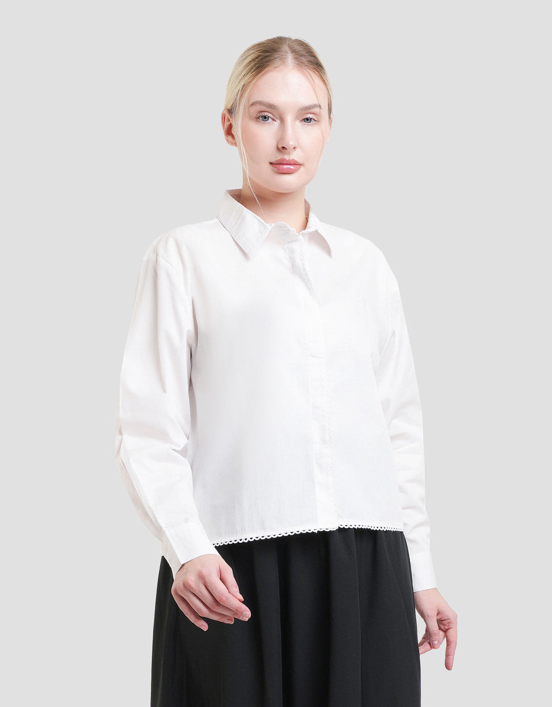 Kemeja wanita sebagai outfit keseharian Anda yang dapat Anda gunakan pada berbagai kesempatan berharga. Model yang classic dan basic serta detailnya yang menawan, mudah dipadankan dengan bawahan apapun sesuai style keseharian Anda. Bahan yang berkualitas akan nyaman saat digunakan sepanjang hari.