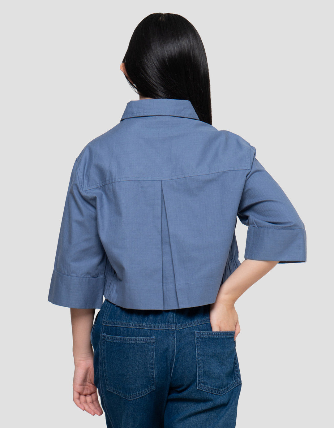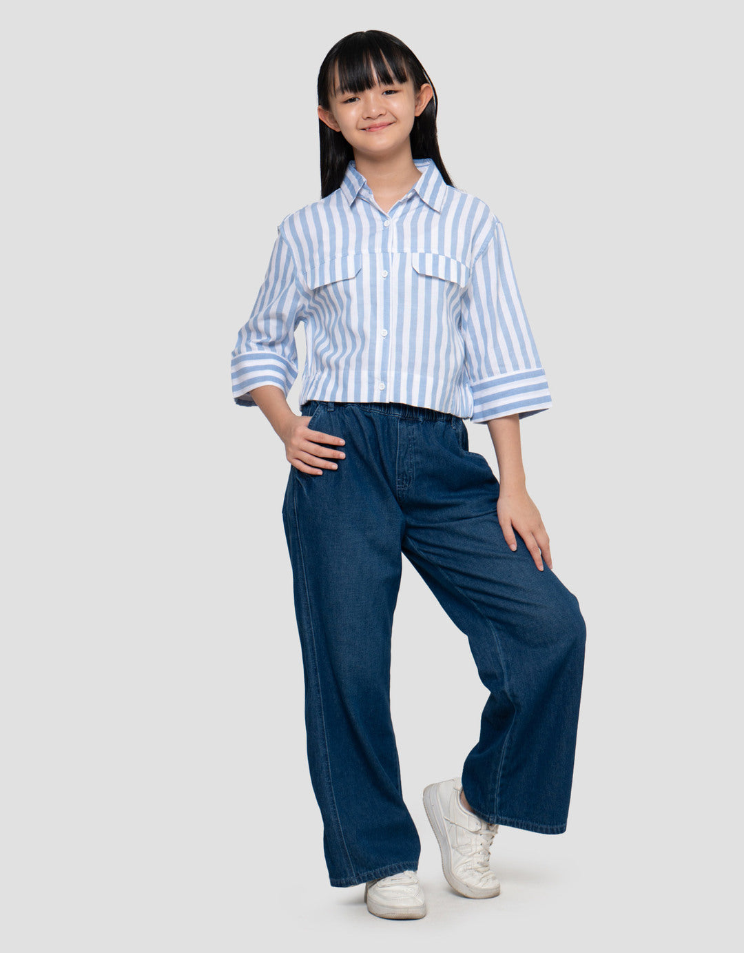 Nevada Lengan 7/8 Salur Kantong Kemeja Anak Perempuan
