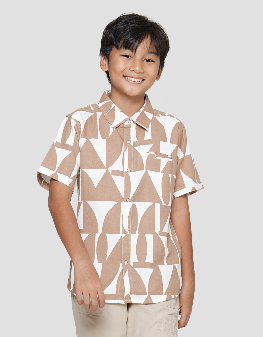 Nevada Oxford Leno Print Abstract Trendy Kemeja Lengan Pendek Anak Laki-Laki