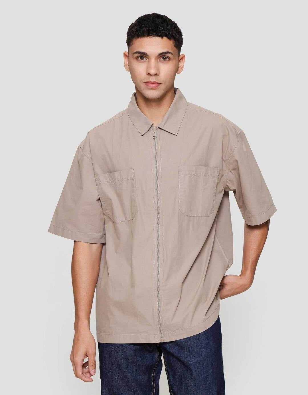 Nevada Paper Touch Full Zipper With Pocket Reg Collar Kemeja Pria