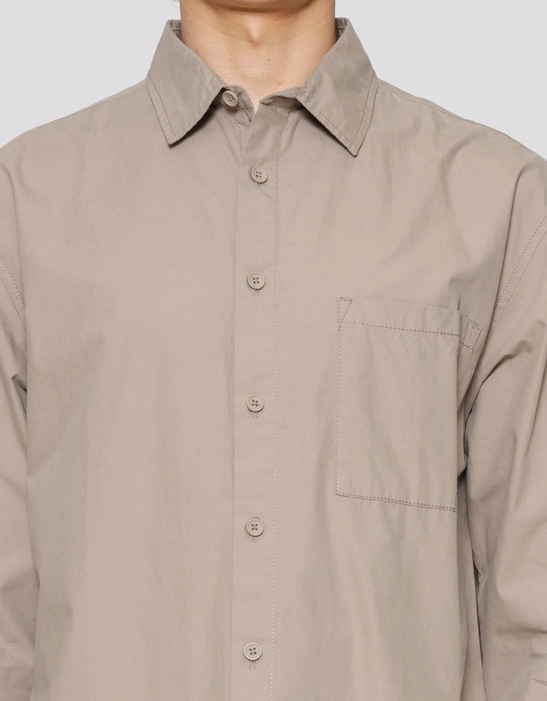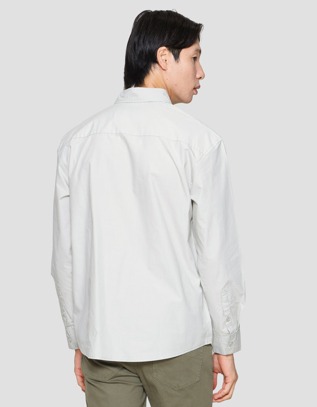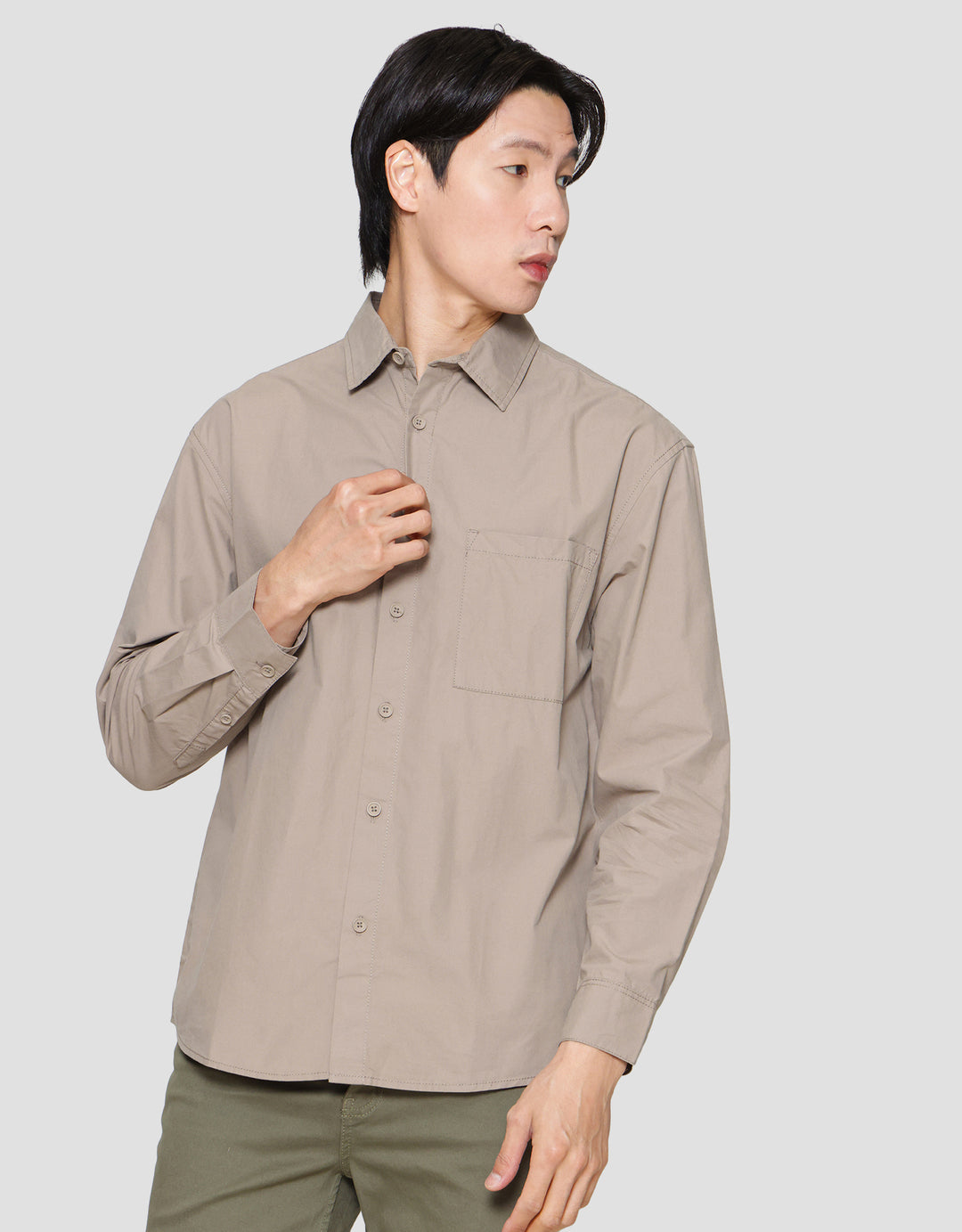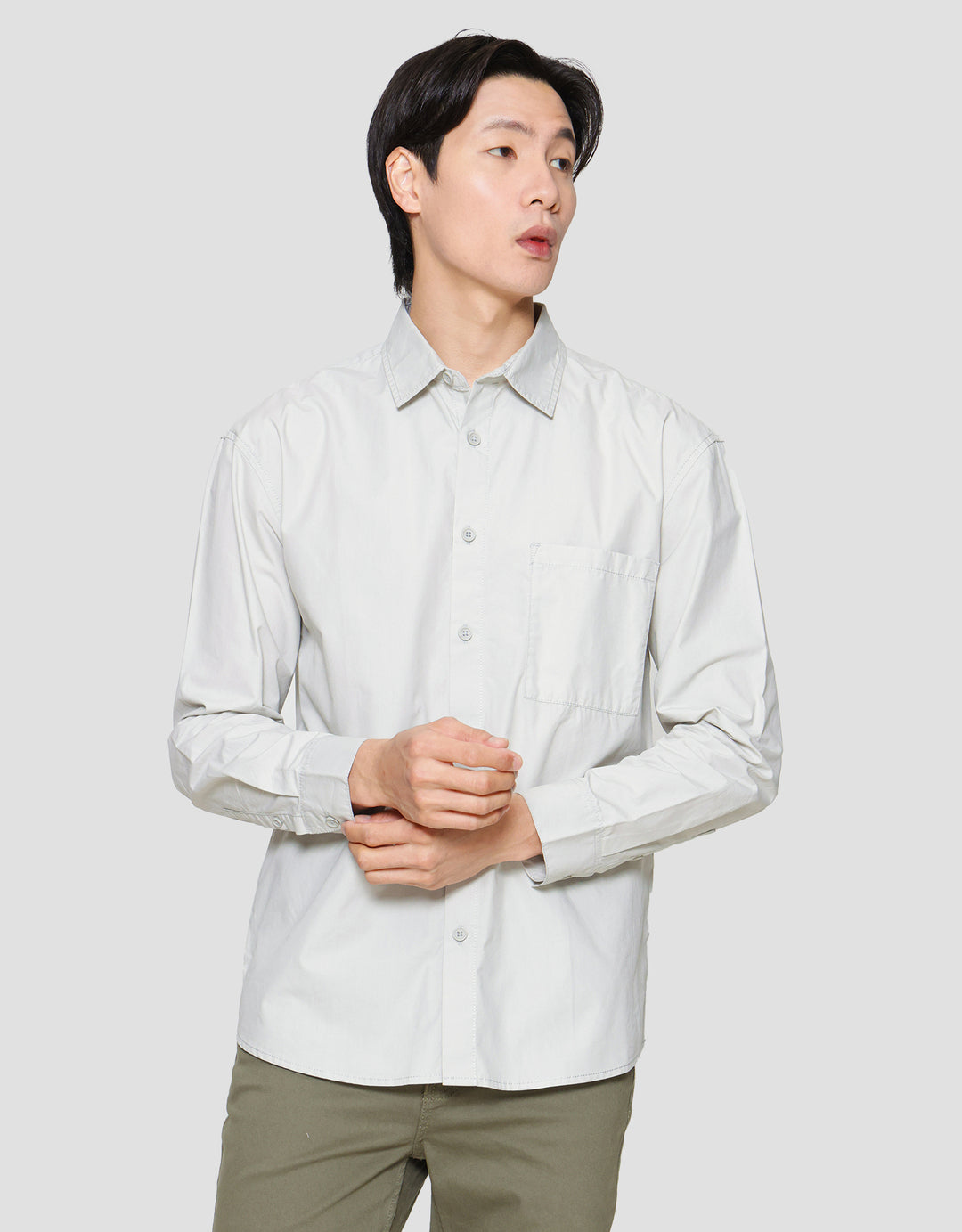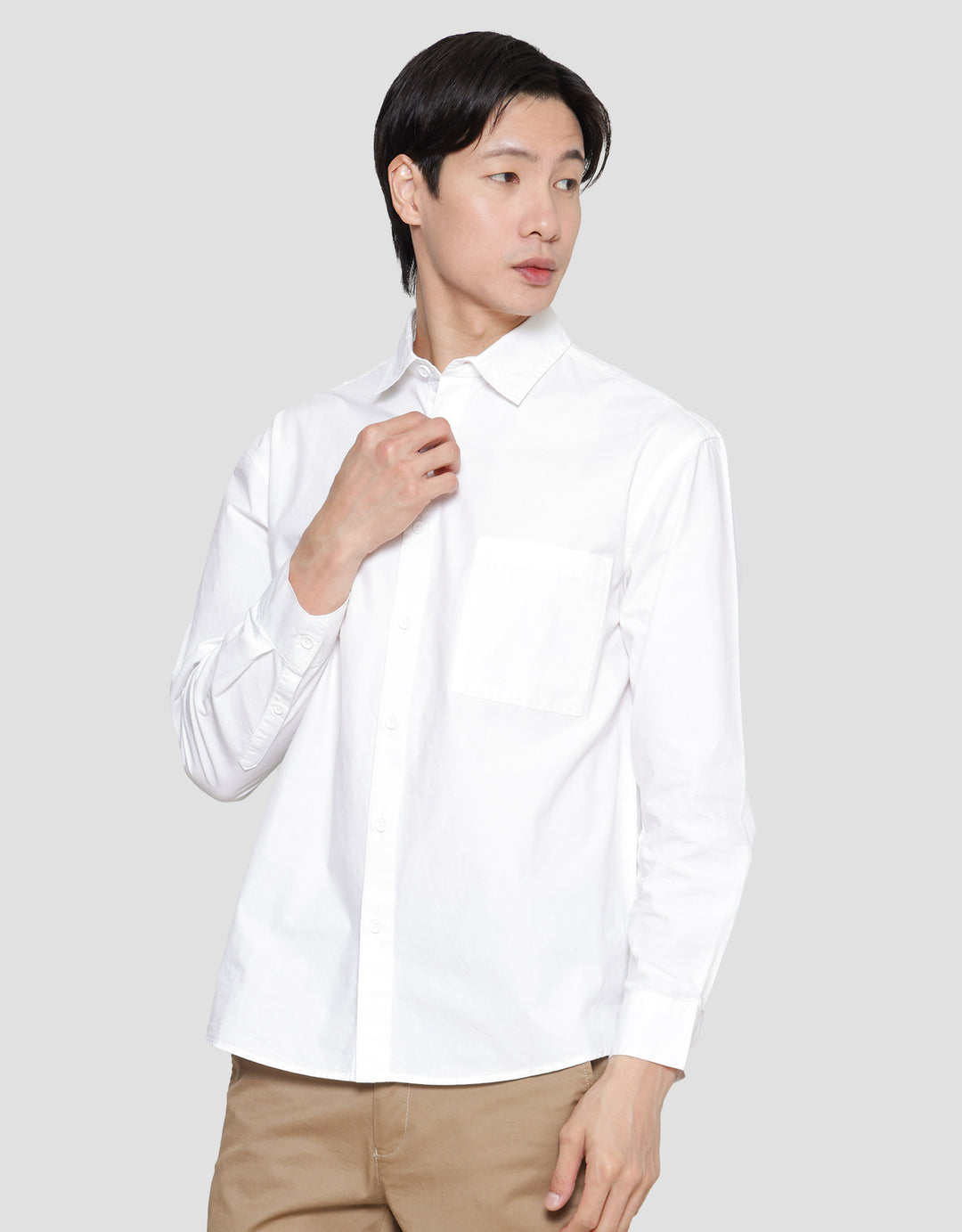 - Detail kerah regular, kancing dan saku depan, lengan panjang
