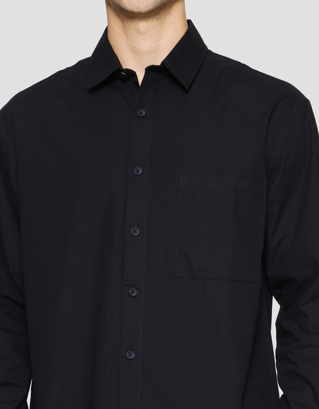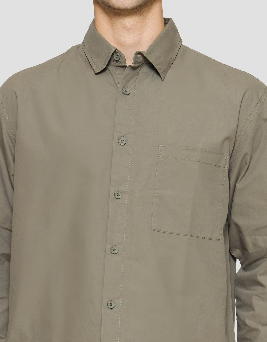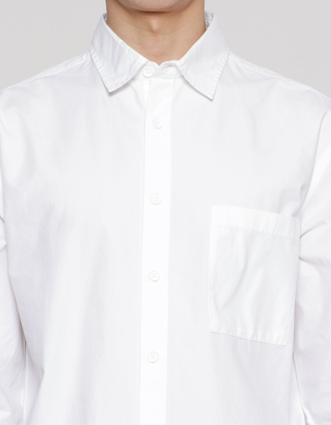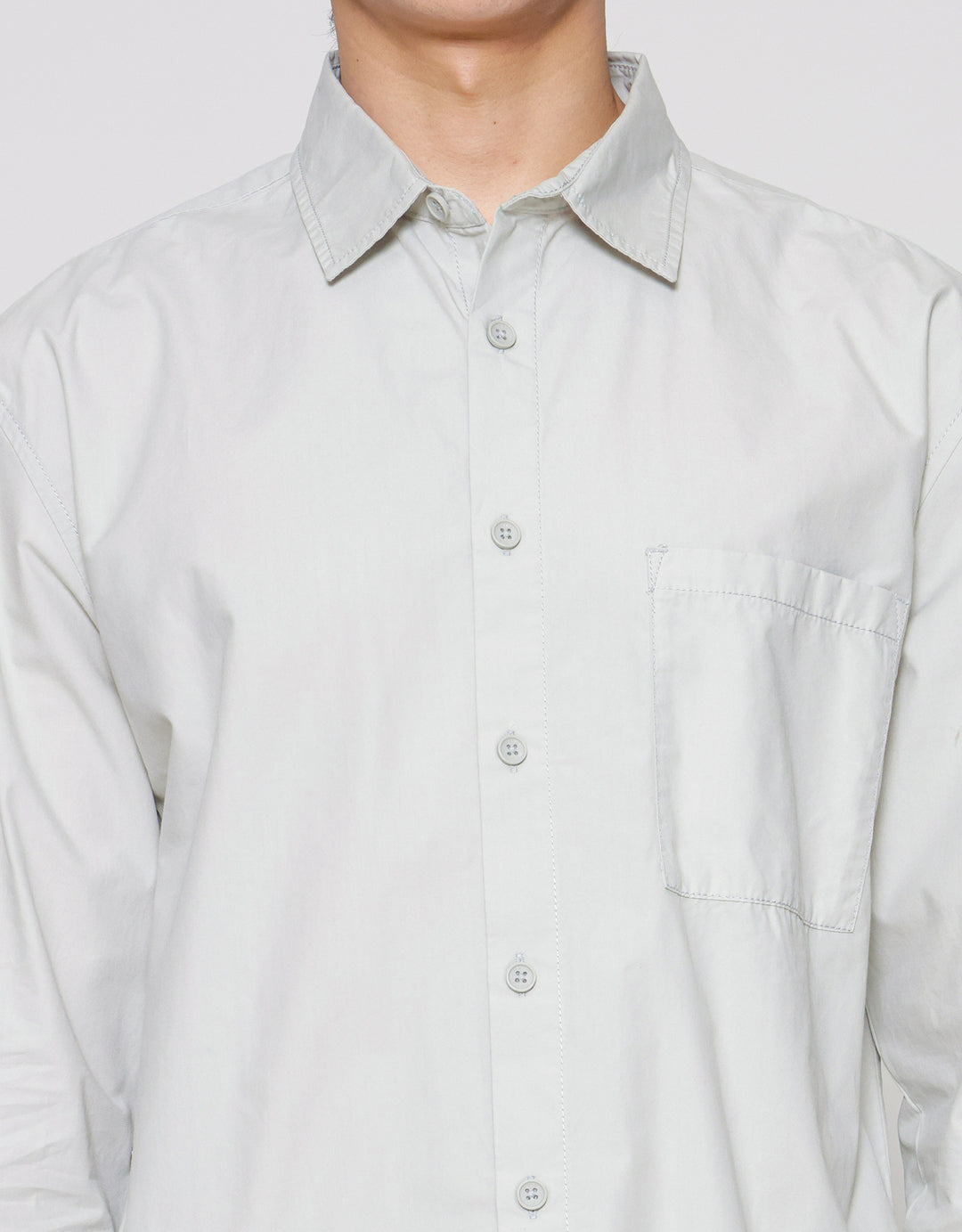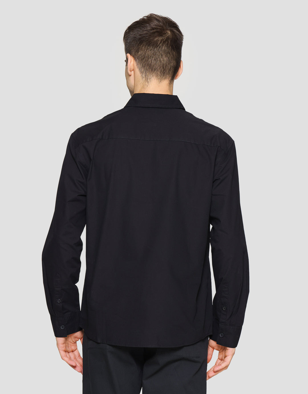 - Detail kerah regular, kancing dan saku depan, lengan panjang