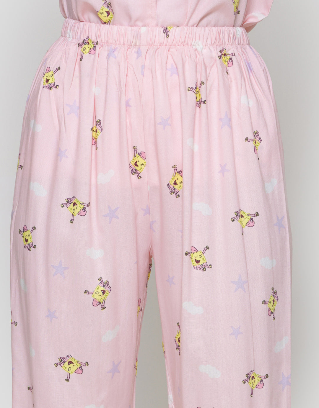 Nevada Pink Spongebob Print Setelan Piyama Wanita