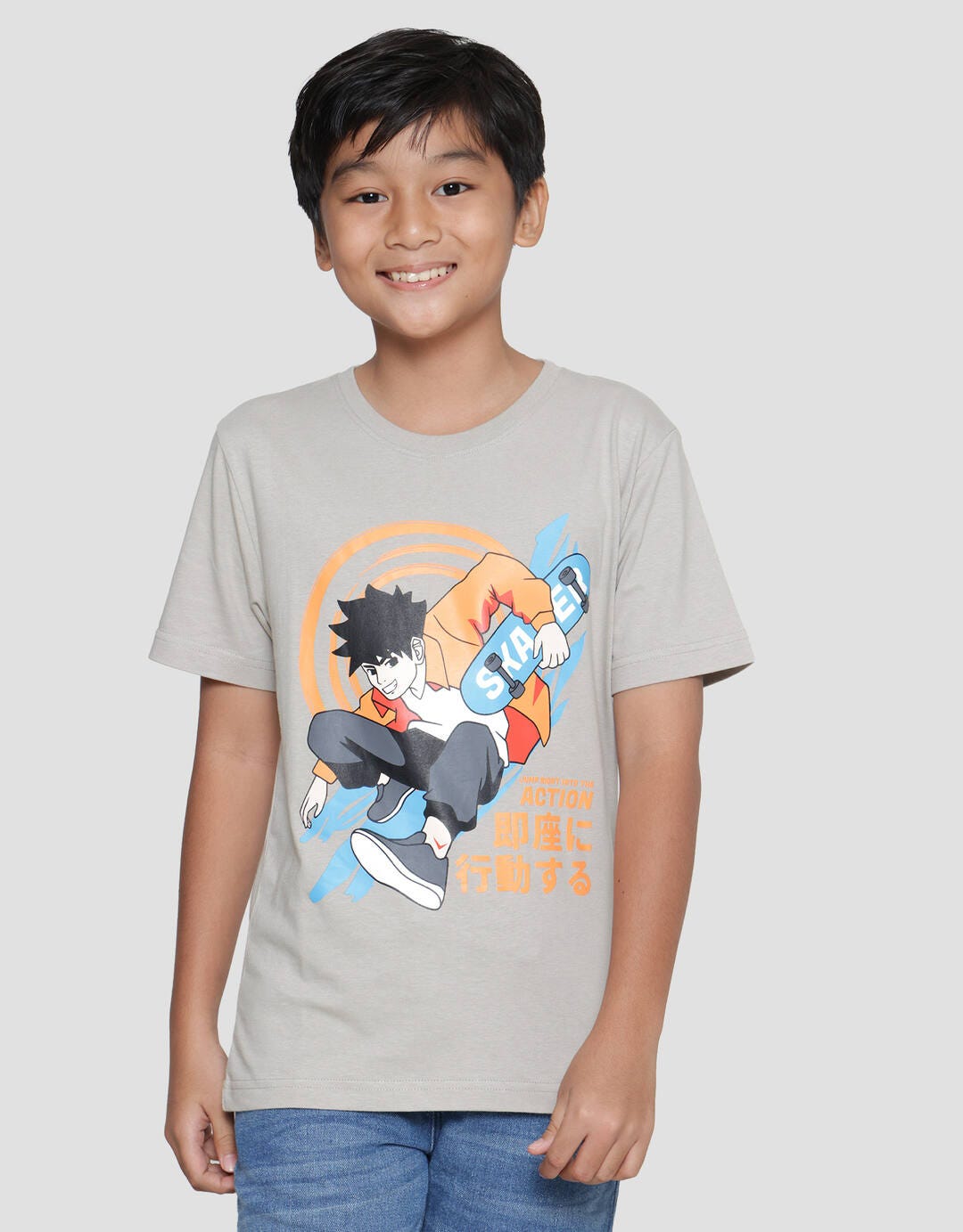 Nevada Print Anime Skater Jump Right Kaos Lengan Pendek Anak Laki-Laki