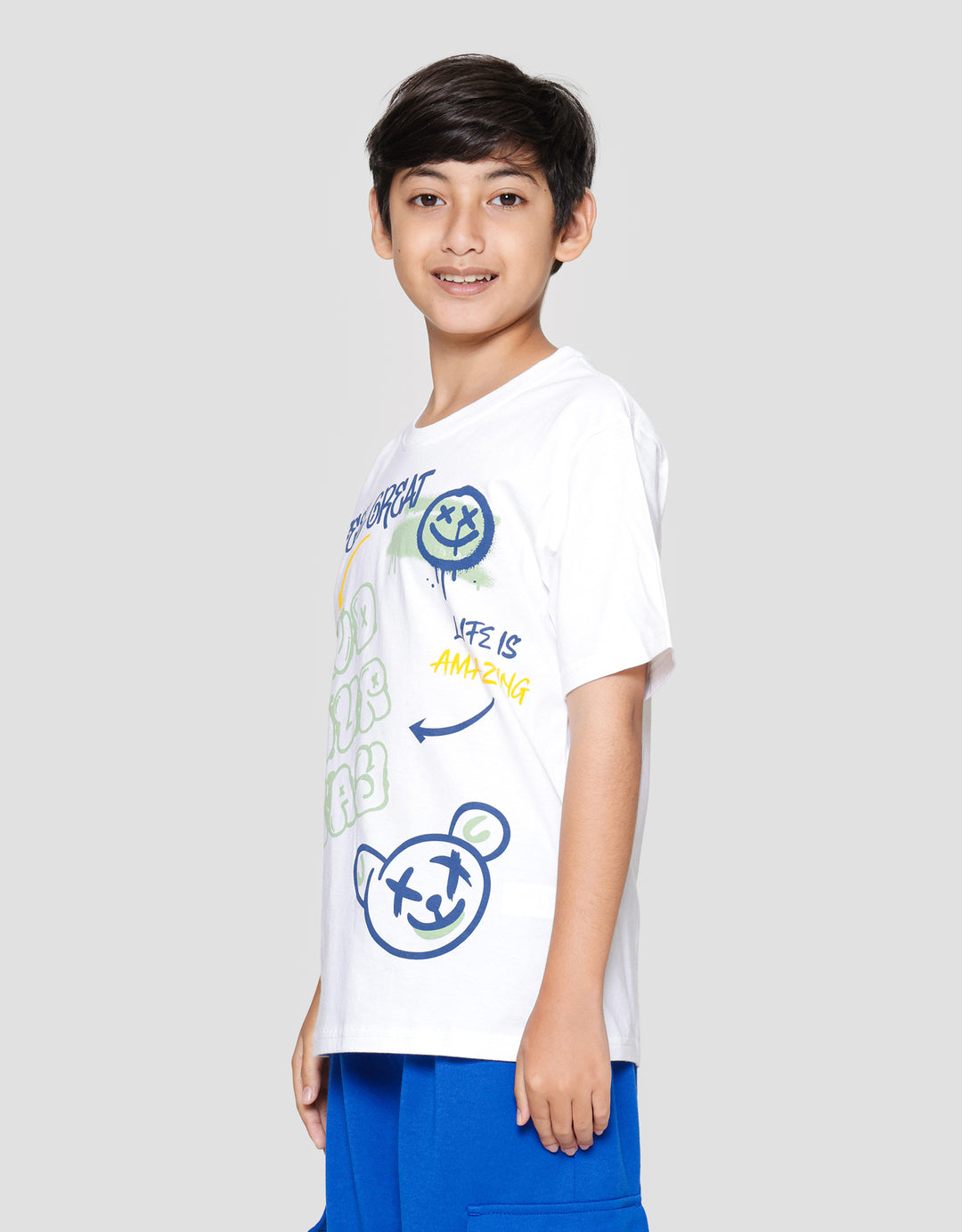 Kaos anak laki-laki dengan design simple dan casual untuk outfit keseharian anak. Model yang up to date dan timeless mudah dipadankan dengan outfit lainnya. Bahan yang berkualitas akan nyaman saat digunakan sepanjang hari.