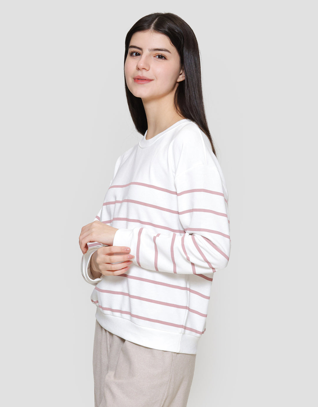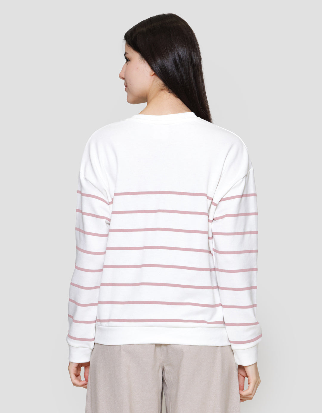 Sweater wanita dengan model yang casual dan simple serta detail print yang berkualitas, cocok untuk Anda gunakan pada moment keseharian menemani saat santai Anda.