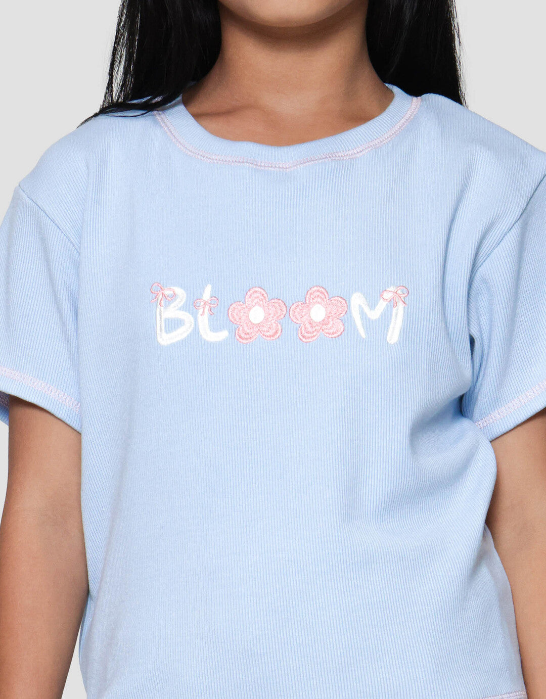 Nevada Rib Contrast Stitching Bordir Kaos Anak Perempuan