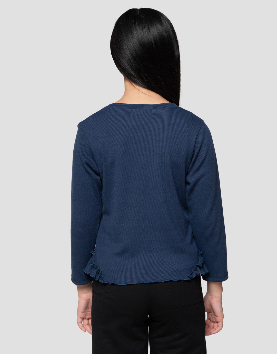 Nevada Rib Ruffle Pinggir Bordir New York Kaos Anak Perempuan