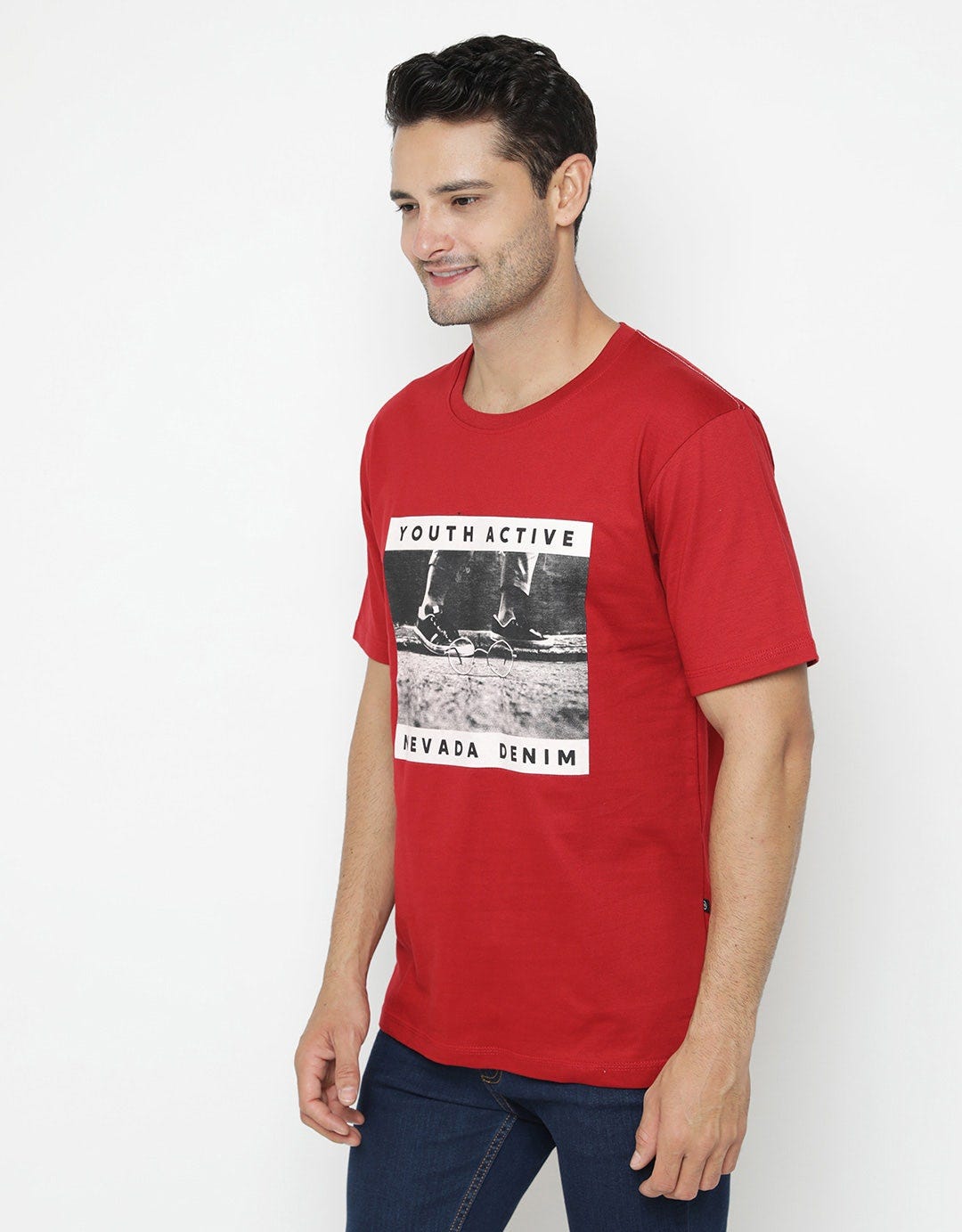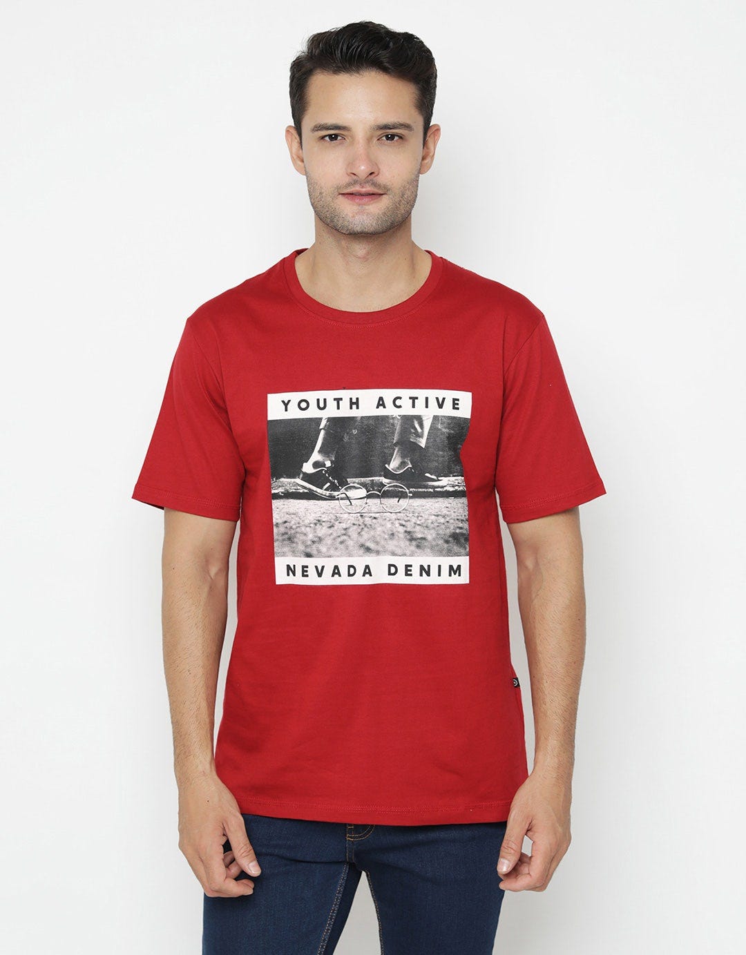 Nevada Round Neck Regular Print Glasses Kaos Lengan Pendek Pria