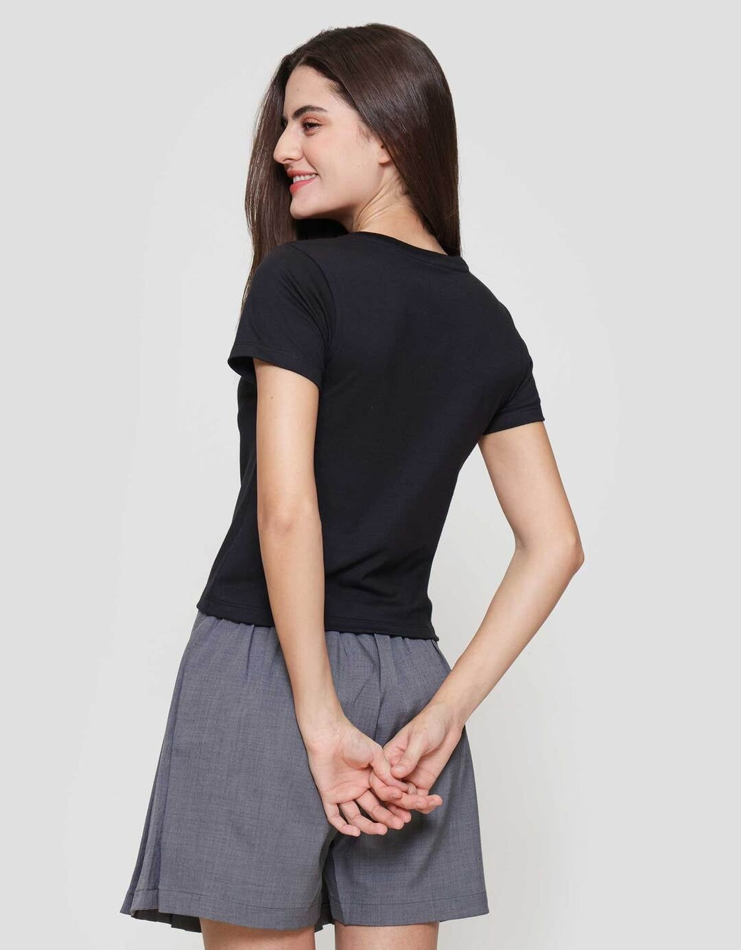 - Lengan pendek, kerah bundar