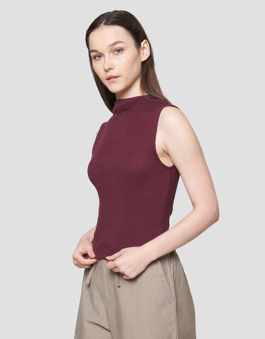 Nevada Solid Rib High Neck Kaos Tanktop Wanita