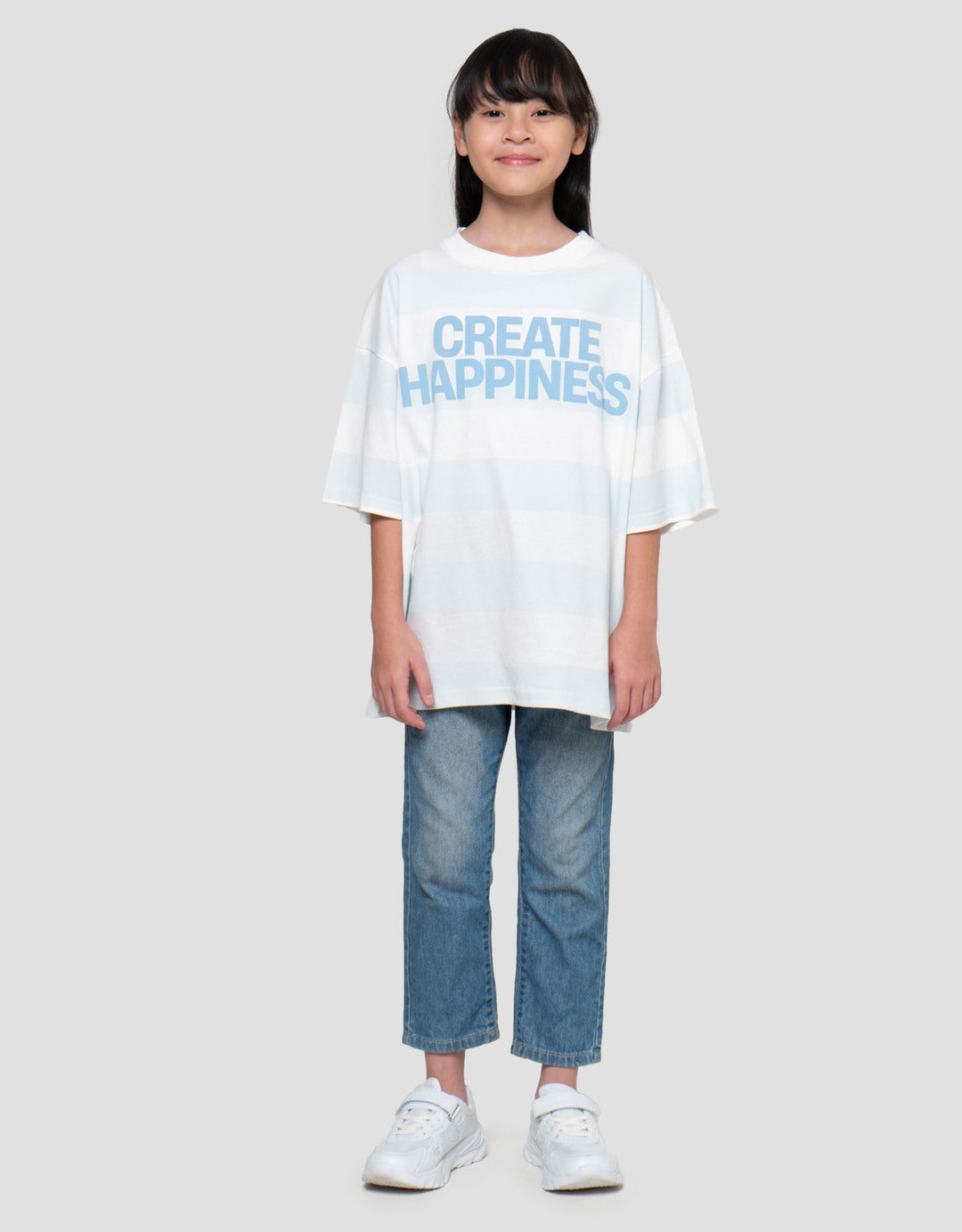 Nevada Stripe Create Happiness Kaos Oversize Anak Perempuan