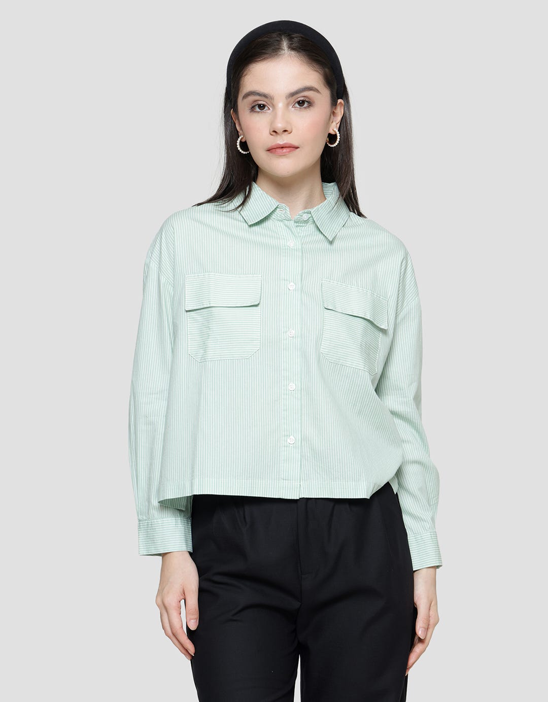 Nevada Stripe Look Woven Kemeja Lengan Panjang Wanita
