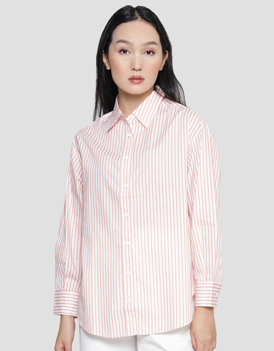 Nevada Stripe Woven Kemeja Lengan Panjang Wanita