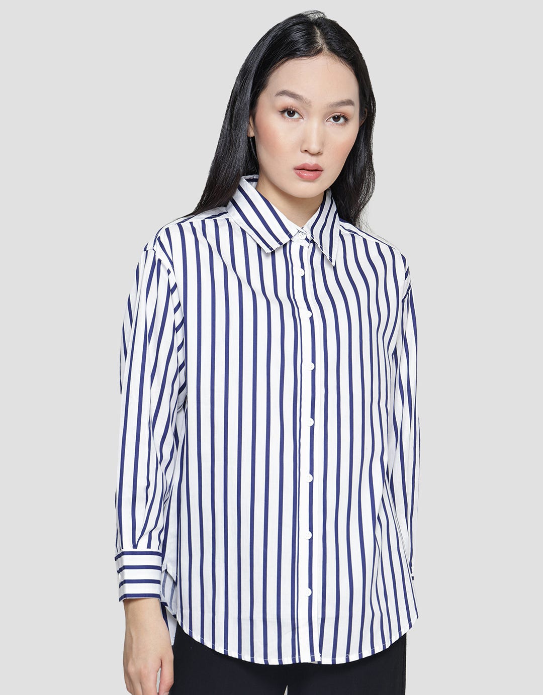 Nevada Stripe Woven Kemeja Lengan Panjang Wanita