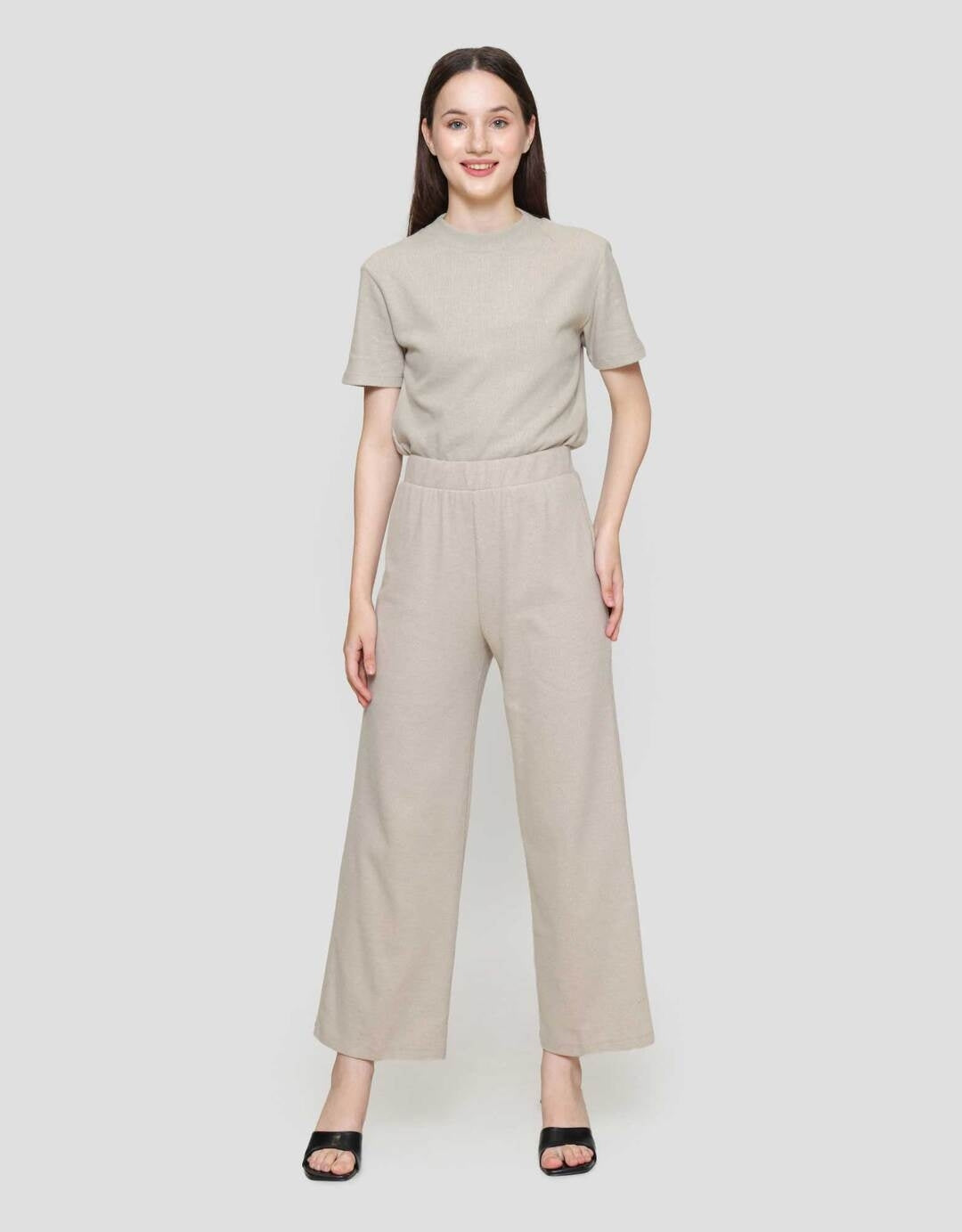 Nevada Sueding Knit Wide Leg Celana Panjang Wanita