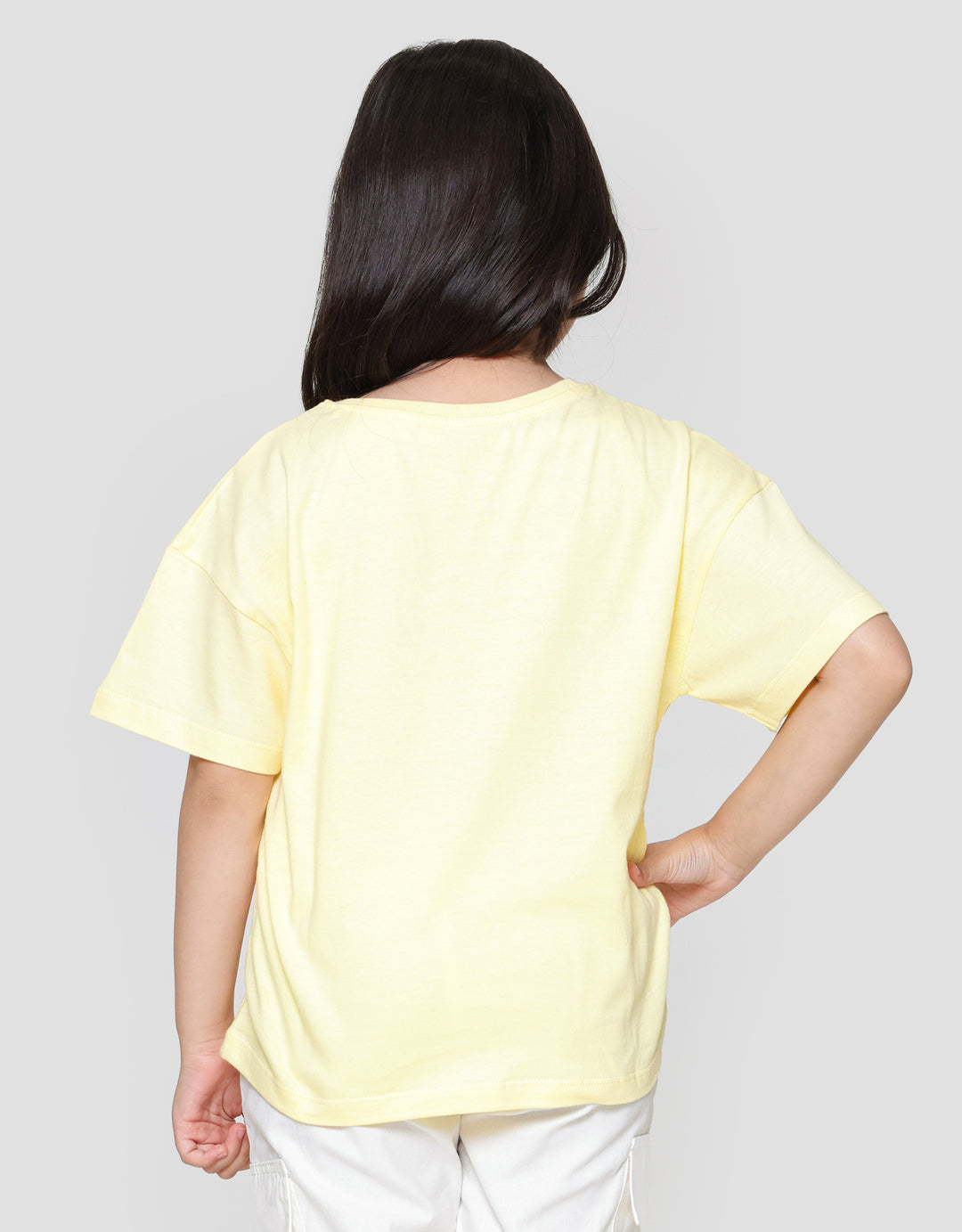 Kaos anak perempuan dengan model yang simple dan casual, cocok untuk dijadikan outifit keseharian saat anak beraktifitas. Bahan yang berkualitas akan nyaman saat digunakan sepanjang hari.