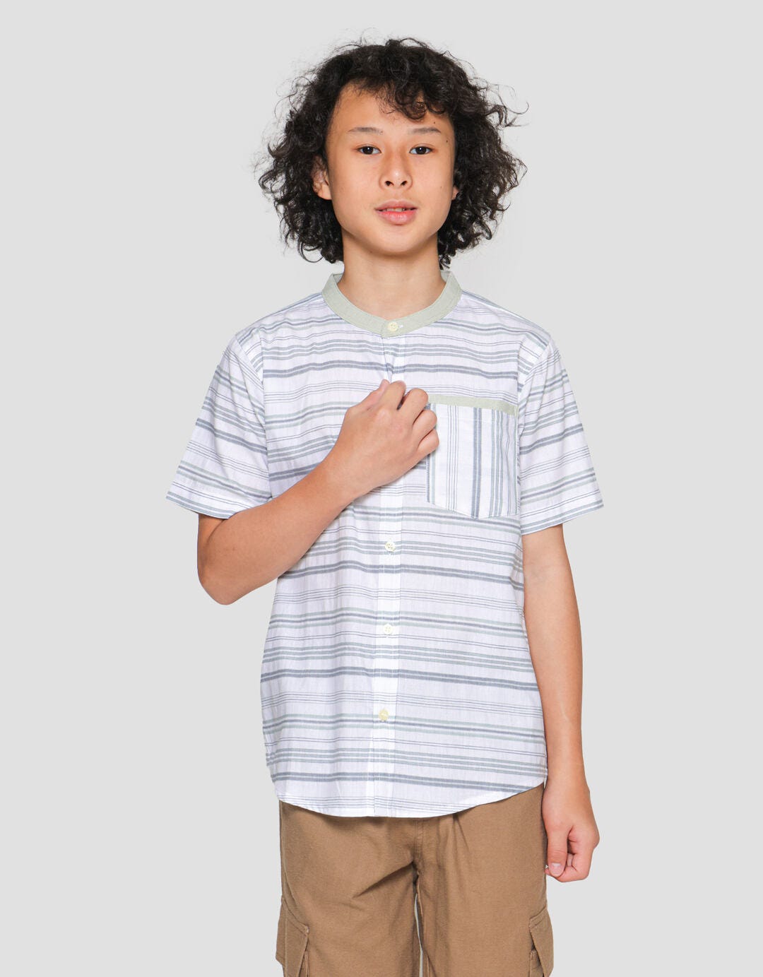 Nevada Textured Salur Kemeja Koko Lengan Pendek Anak Laki-laki
