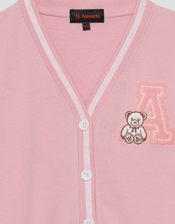 Nevada Varsity Bordir Chenile Bear Cardigan Anak Perempuan