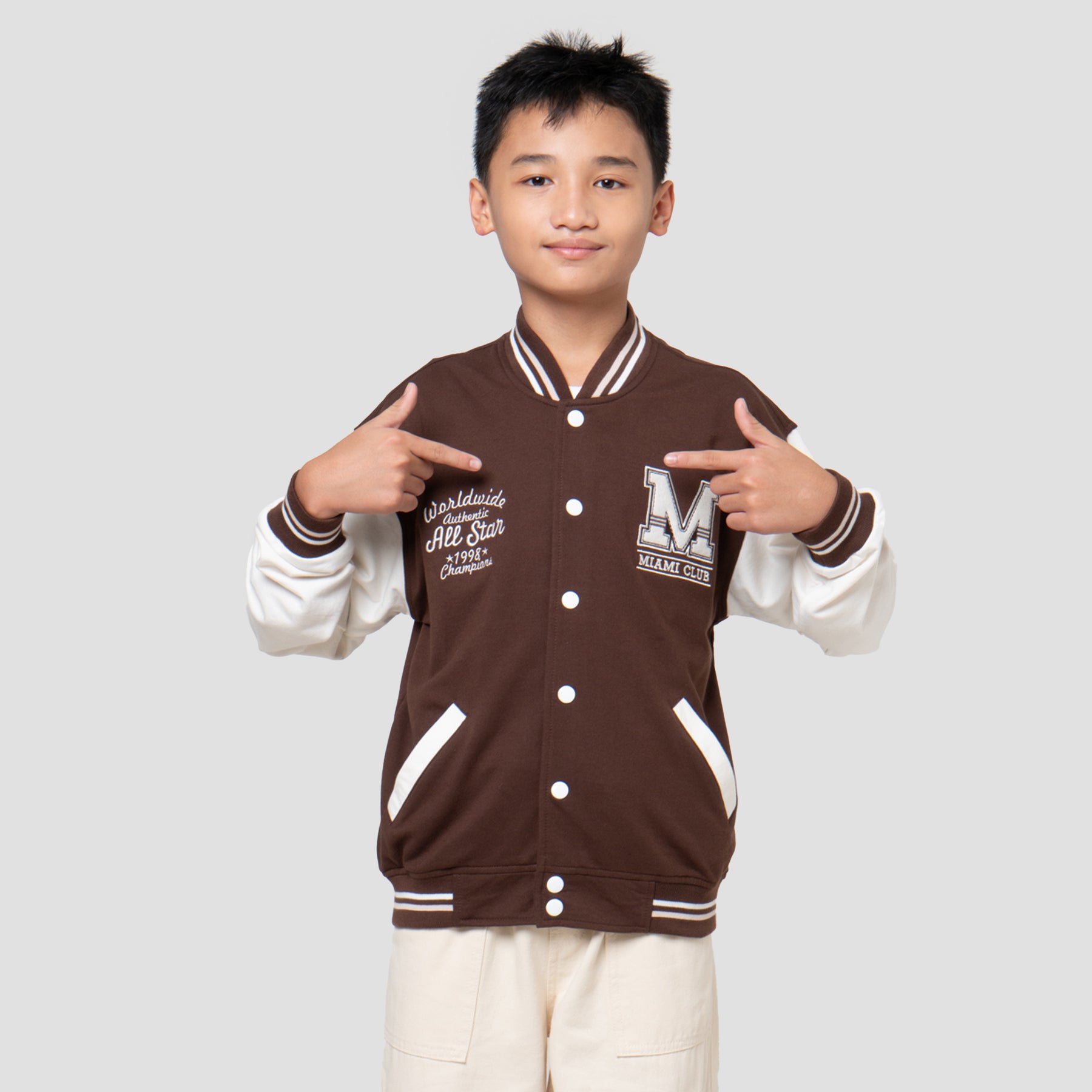 Jaket anak laki-laki dengan design yang simple dan casual, cocok untuk digunakan anak pada moment keseharian mereka untuk menunjang penampilan anak menjadi lebih menawan. Model yang simple mudah untuk dipadankan dengan bawahan kesukaan mereka dan membuat mereka nyaman dalam beraktifitas sehari-hari.