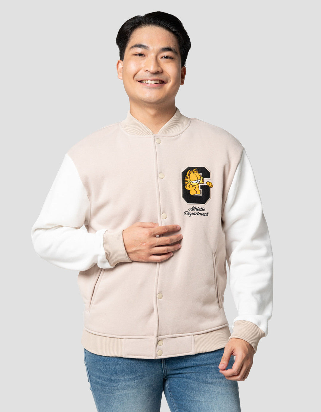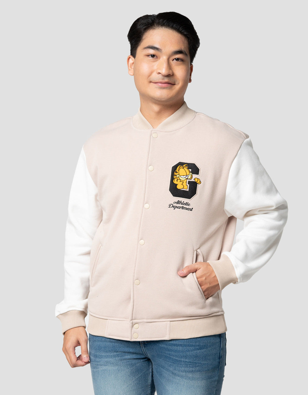 Nevada Varsity Garfield Patches And Backprint Jaket Pria