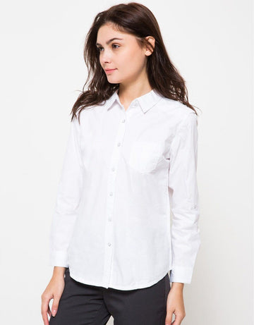 Nevada Wanita Basic Two Pockets LS Shirt Putih