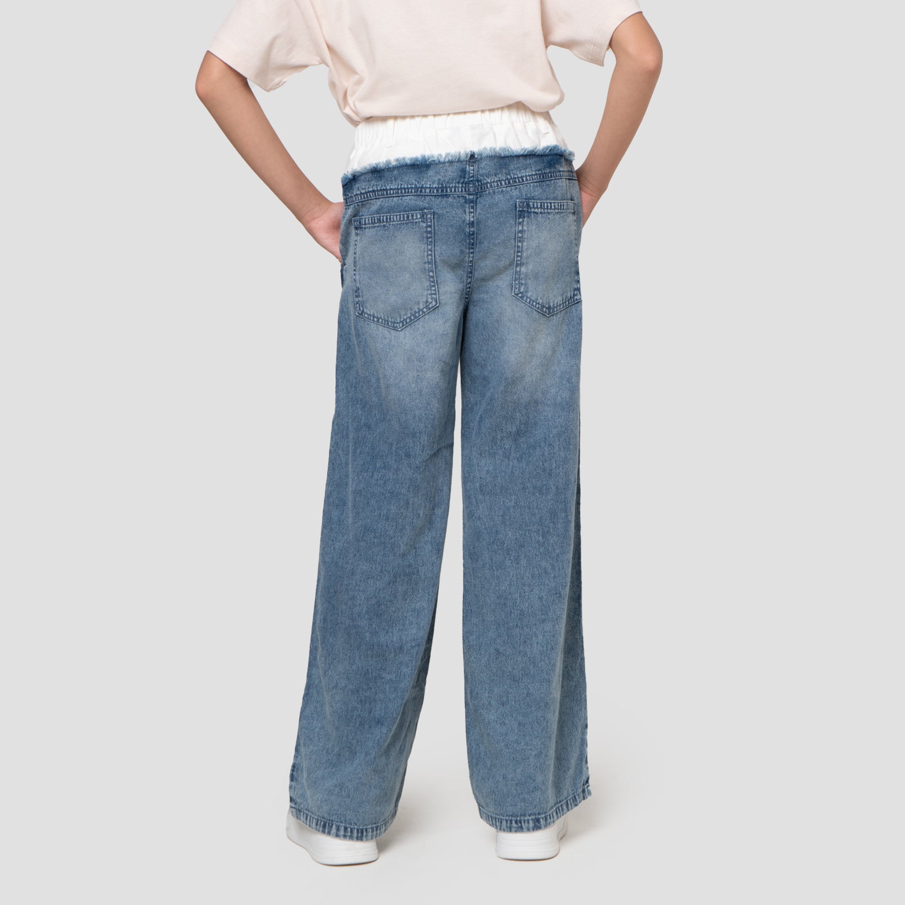 Nevada Wide Leg Kombinasi Pinggang Celana Denim Anak Perempuan