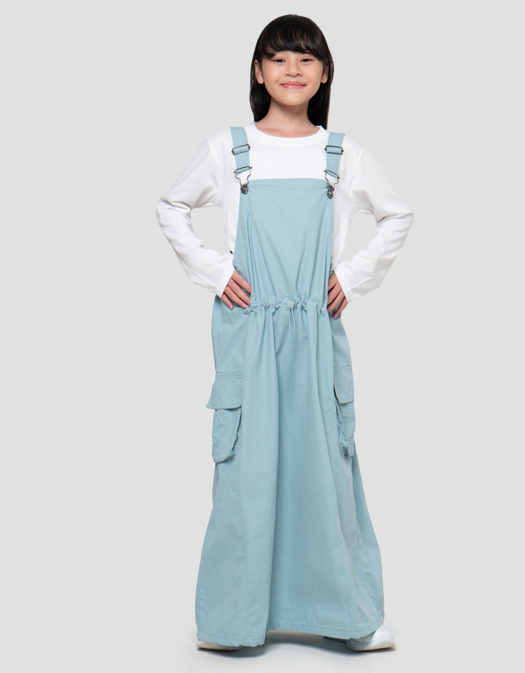 Nevada Woven Overall Kantong Kargo Maxi Dress Anak Perempuan