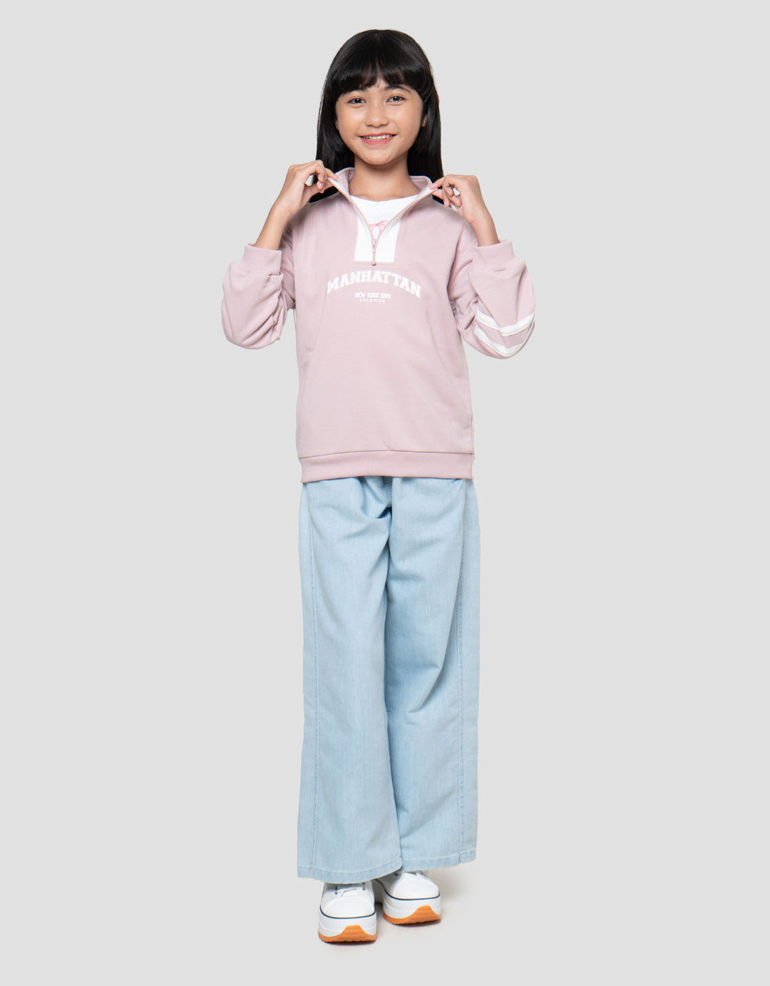 Nevada Zipper Lengan Garis 2 Bordir Sweater Anak Perempuan