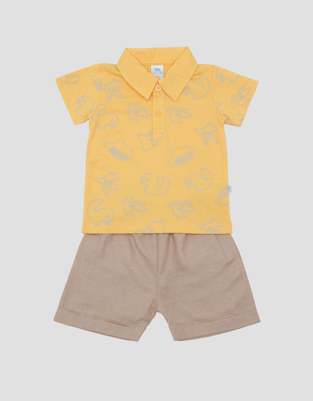 Pipiniko Kaus Kerah Print Dino Baju Set Anak Laki-Laki