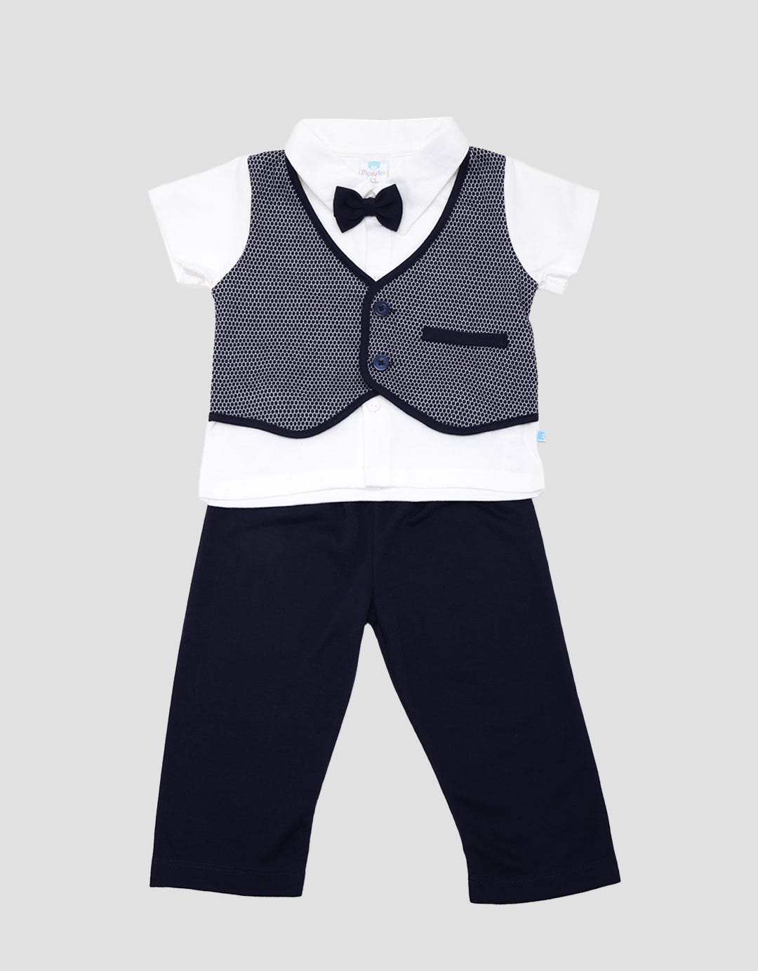 Pipiniko Set Boys Woven Vest Knit Tekstur