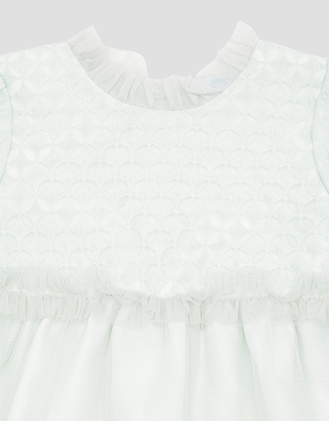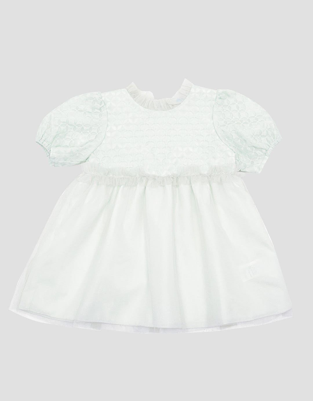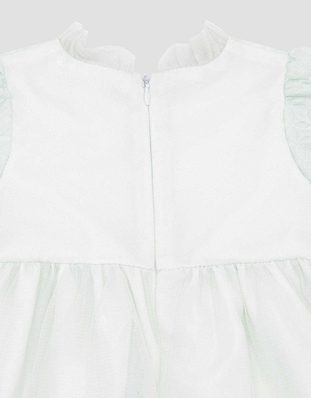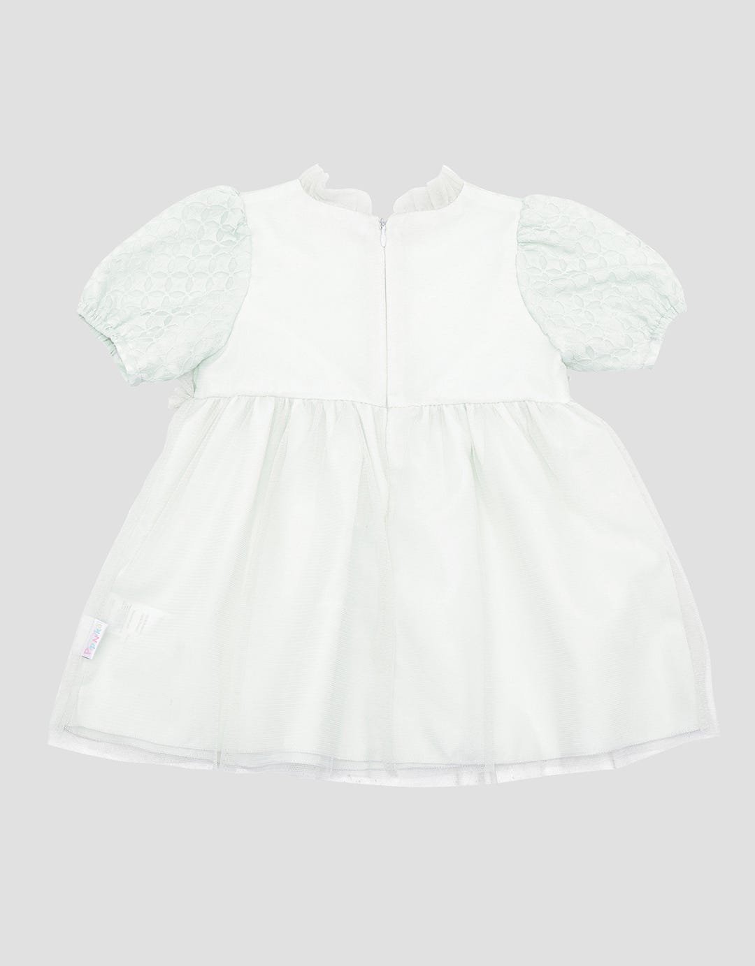 - Detail tulle, lengan pendek, ritsleting belakang