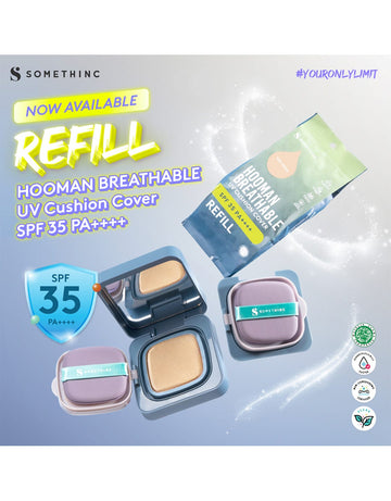 HOOMAN menggunakan Breathable Technology yang anti-bakteri & tidak mudah teroksidasi meski dipakai seharian. Hooman Cushion Somethinc memiliki Medium to High Coverage yang mampu menyamarkan pori-pori serta garis halus dalam sekali tap, dan menghasilkan Skin Matte Finish yang longlasting! Diformulasikan menjadi non-greasy, non-cakey, non-cracking, & oil-control, Flawless Human Skin tanpa kilap minyak berlebih akan menjadi milikmu dalam sekejap! Somethinc Hooman Cushion menjadikan kulit flawless seharian, terasa ringan, & terproteksi dari sinar matahari---semuanya satu di dalam Hooman Breathable Cushion SPF35 PA++++. Somethinc Cushion shade kini tersedia dalam 14 pilihan warna!