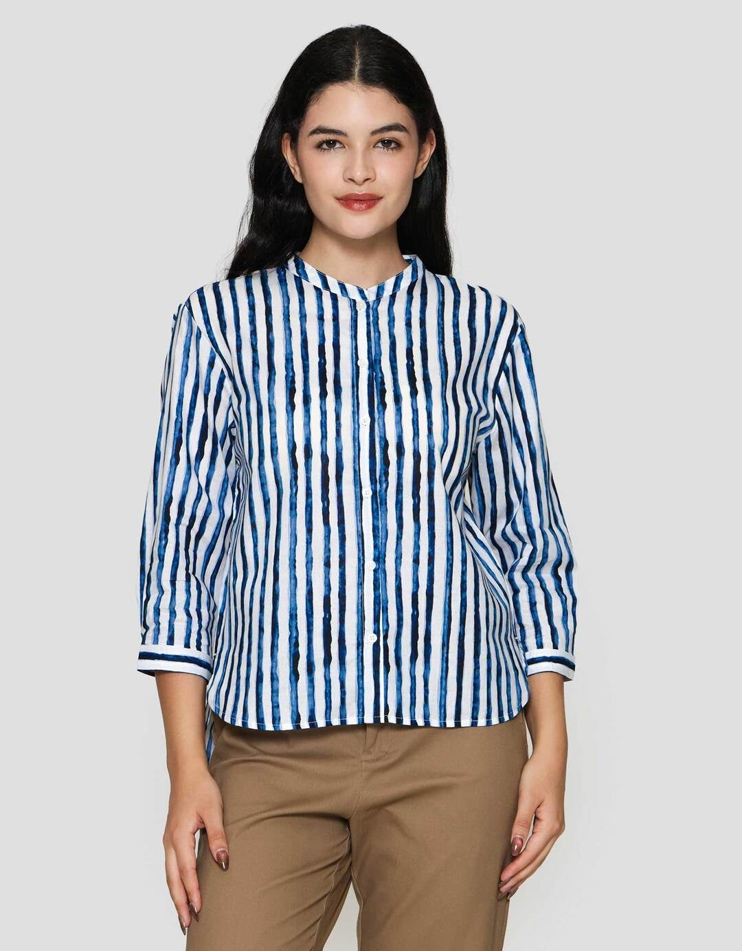St. Yves Cotton Stripes Buttoned Down Blouse Wanita
