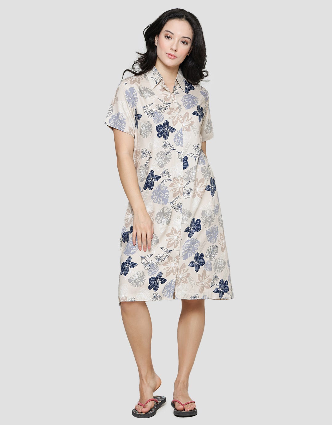 - Detail kerah regular, kancing depan, lengan pendek