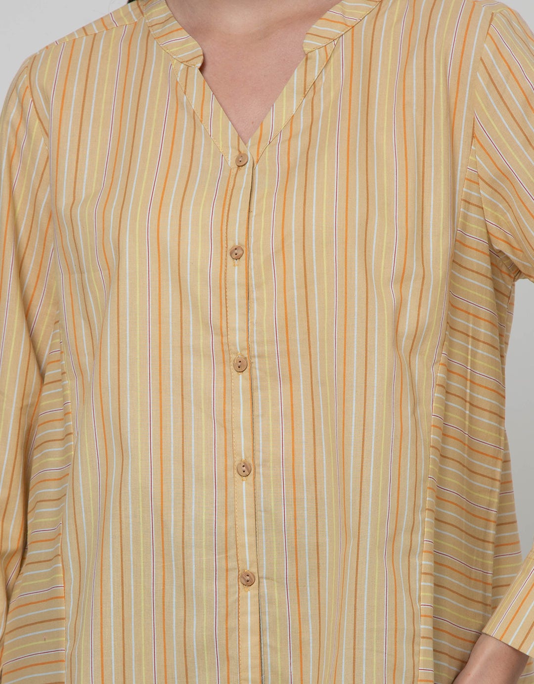 St. Yves Long Sleeve Blouse Cotton Poly Printed Stripe