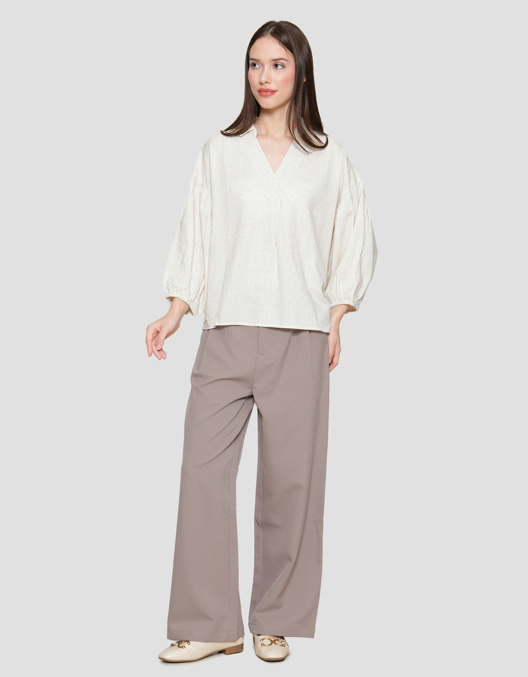 St. Yves Notch Collar Linen Relaxed Blouse Wanita