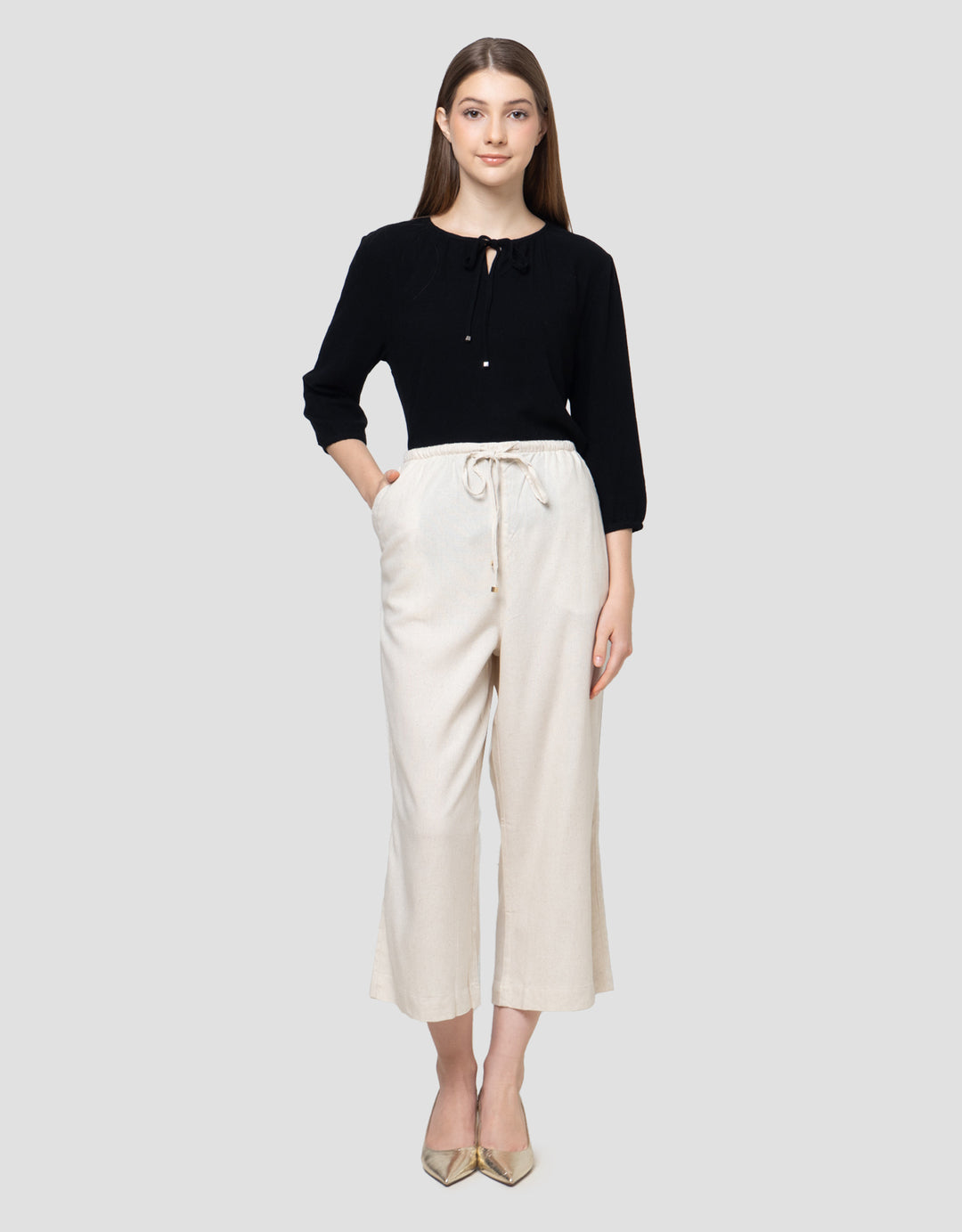 St. Yves Relaxed Linen Cropped Celana Wanita